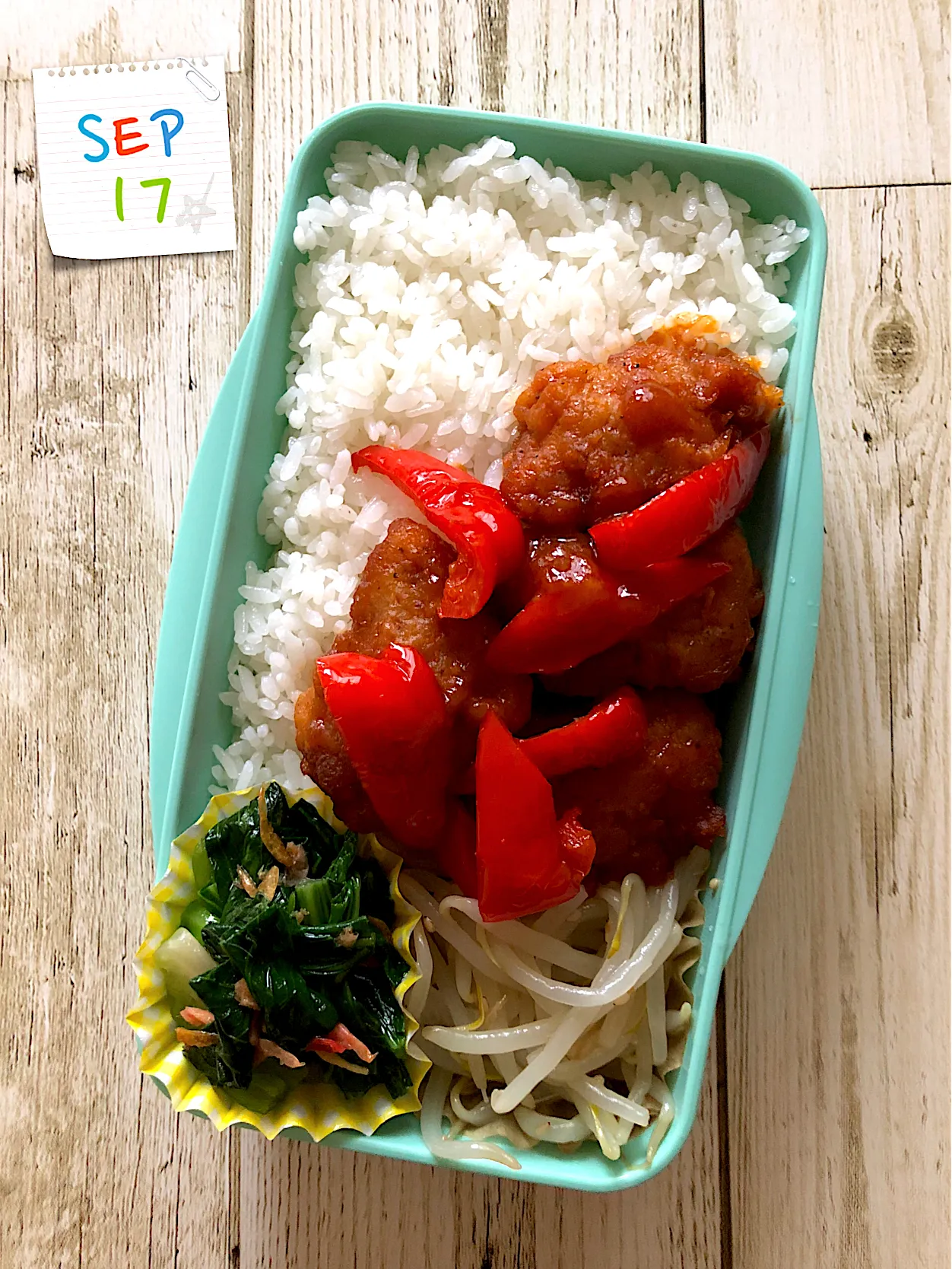 酢鶏+桜海老と青梗菜炒め+もやしナムル