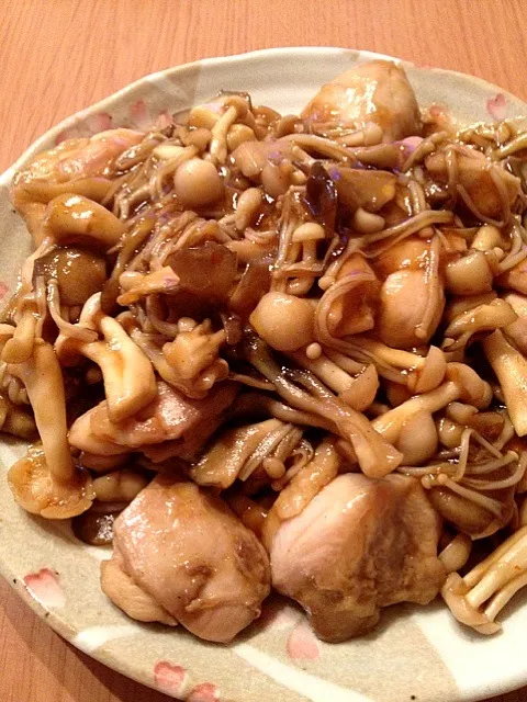 鶏肉とキノコの甘辛炒め❤|リィさん