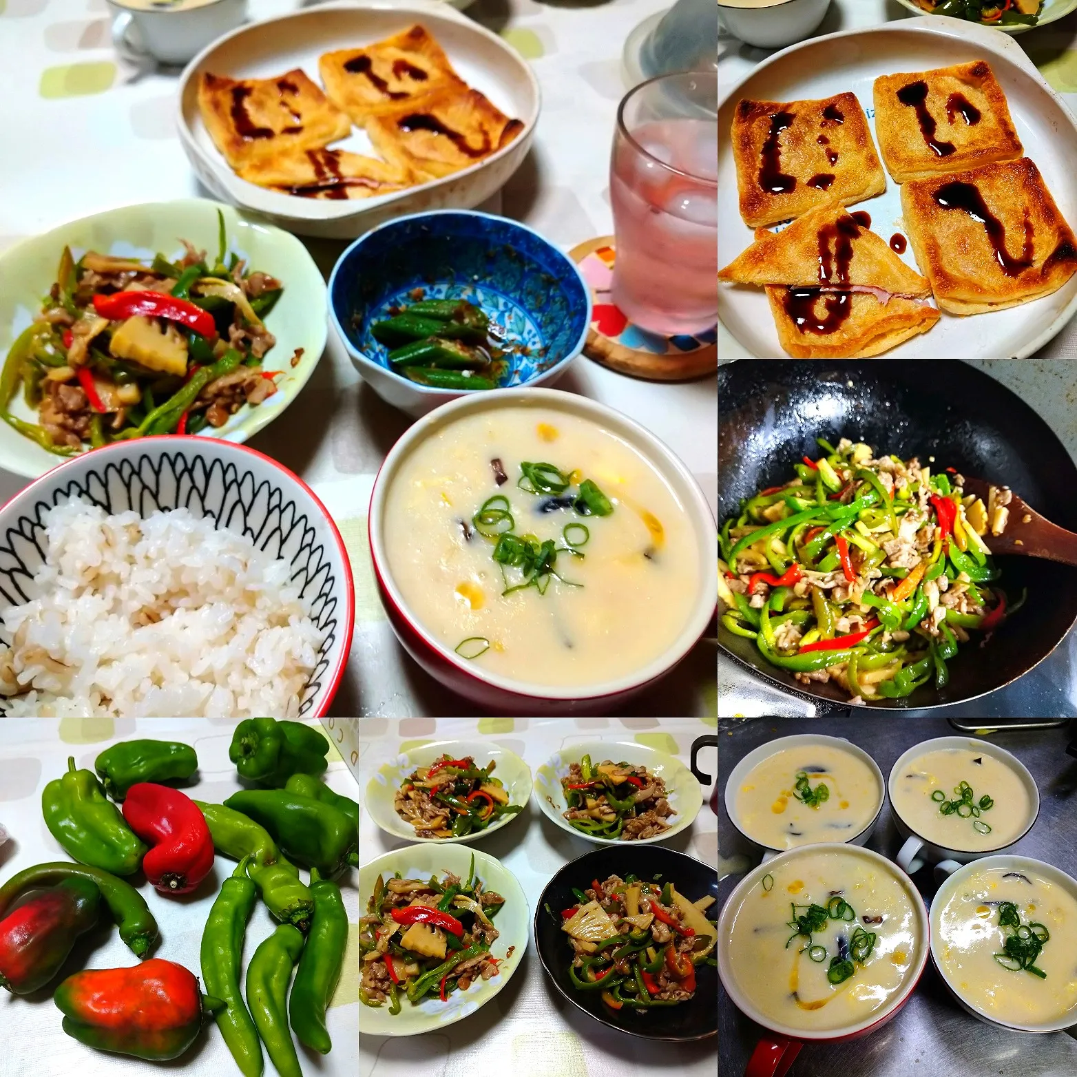 #コーンスープ#ピーマン大量消費#ピーマン#青椒肉絲