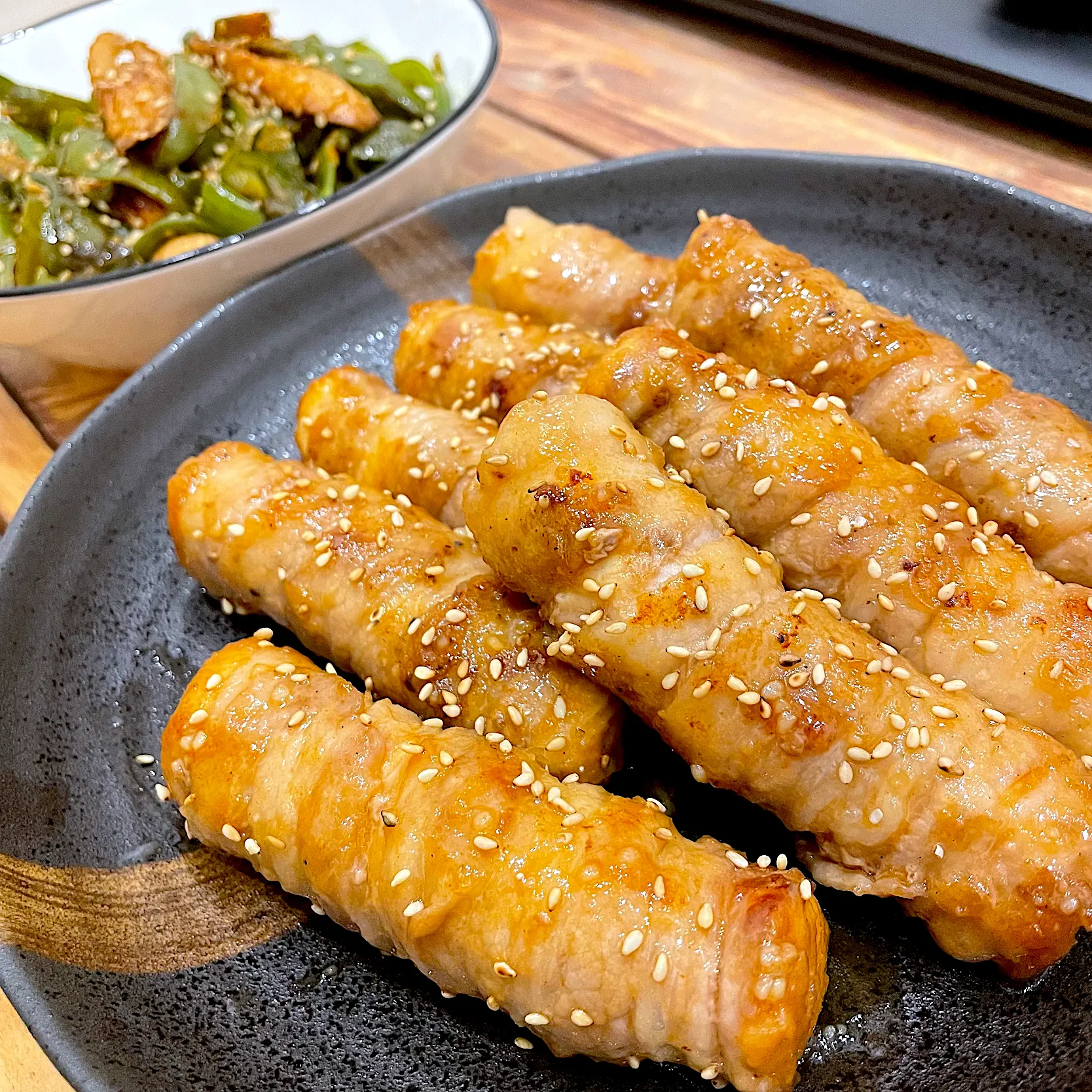 厚揚げ豚巻きとピーマンちくわ
