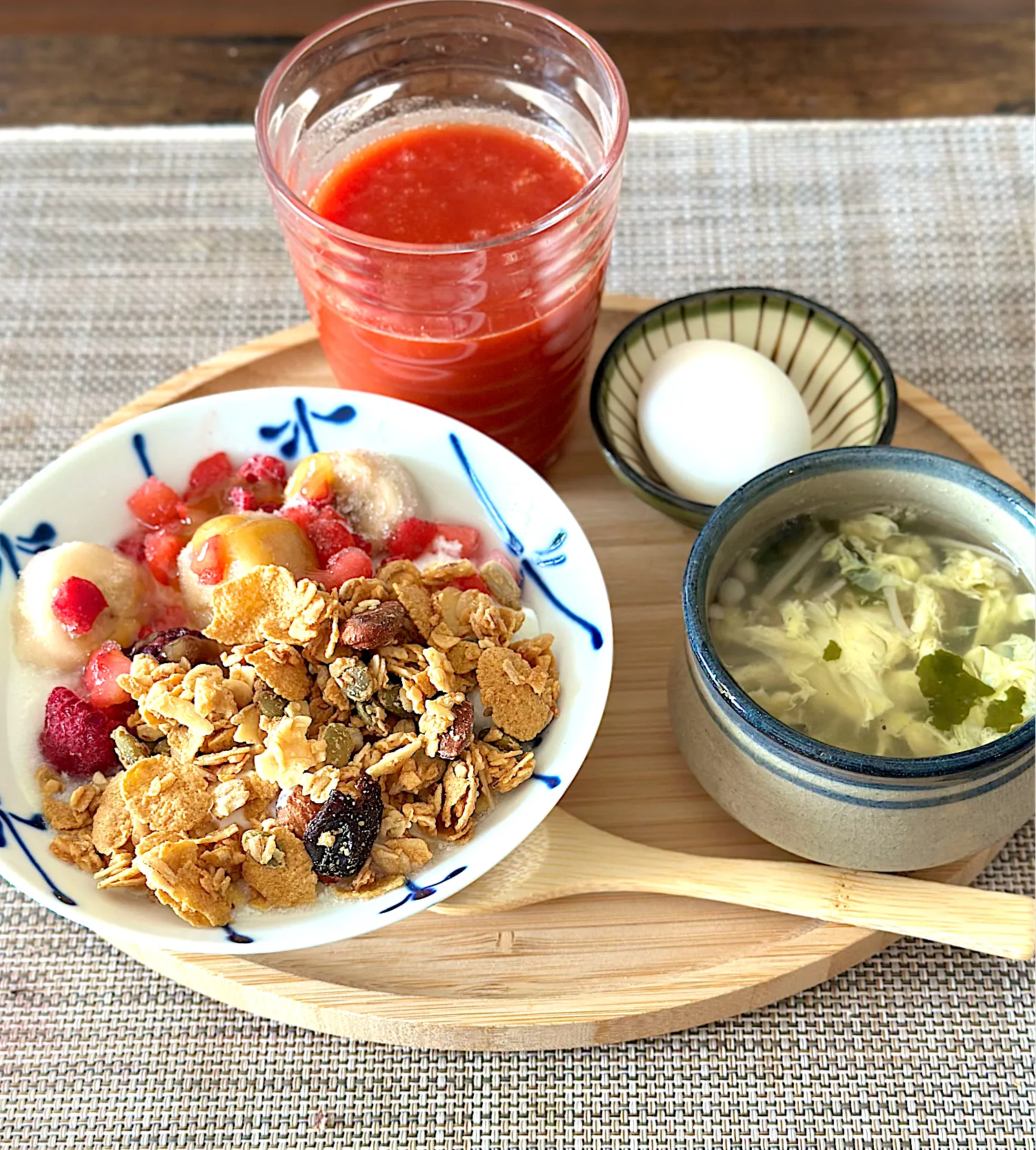 #ヨーグルトに冷凍フルーツとシリアルがけ