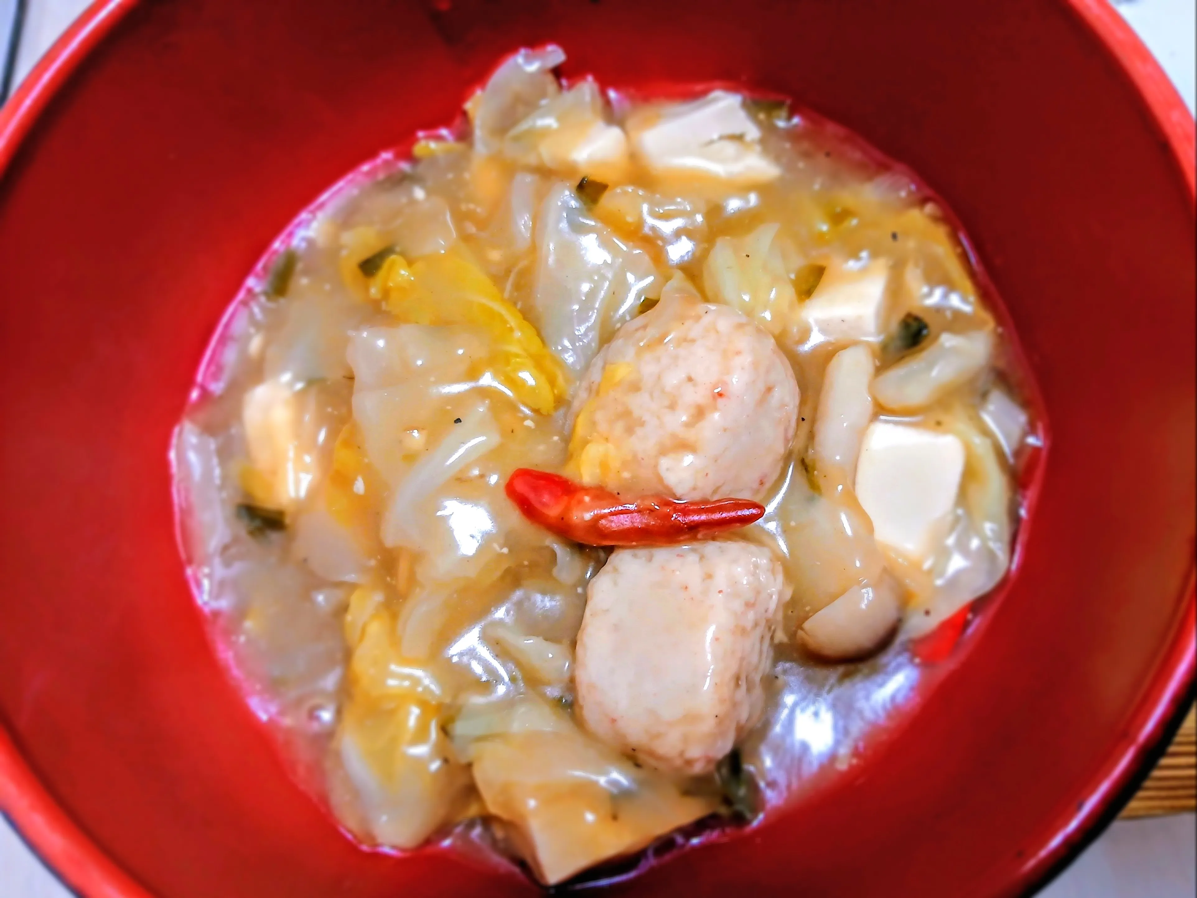 最初は肉無し麻婆豆腐を作る予定が,色々足してたら、少し酸辣湯寄りな優しい八宝菜みたいな味になって🤣