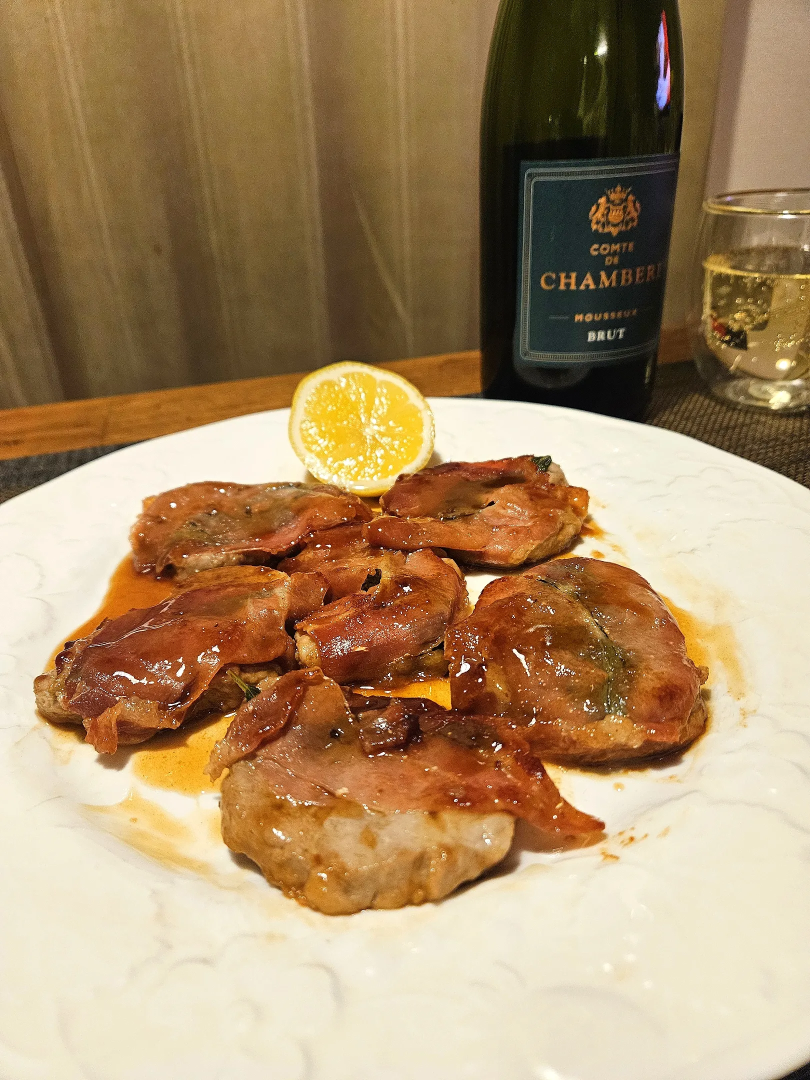 #晩ご飯 #イタリア料理 #サルティンボッカ #肉料理 #ワイン