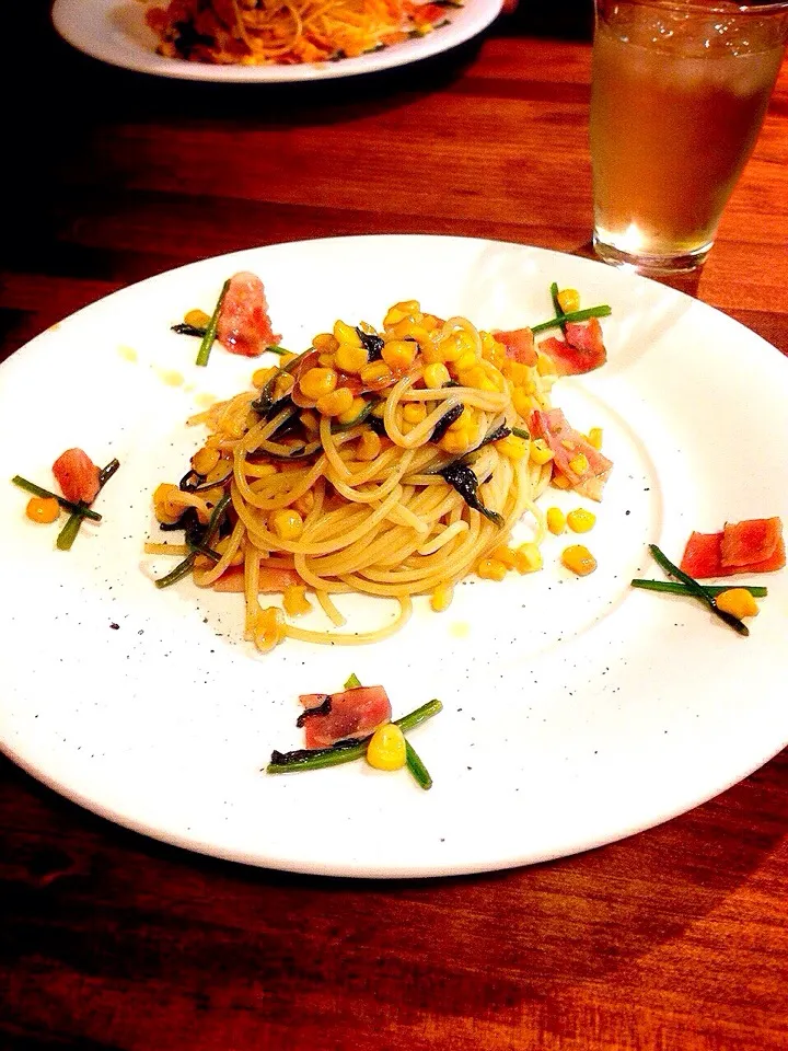 あ〜早く茹であがらないかなぁ〜って、麺の茹であがるの待ちながら、皿に盛ってみた〜ww