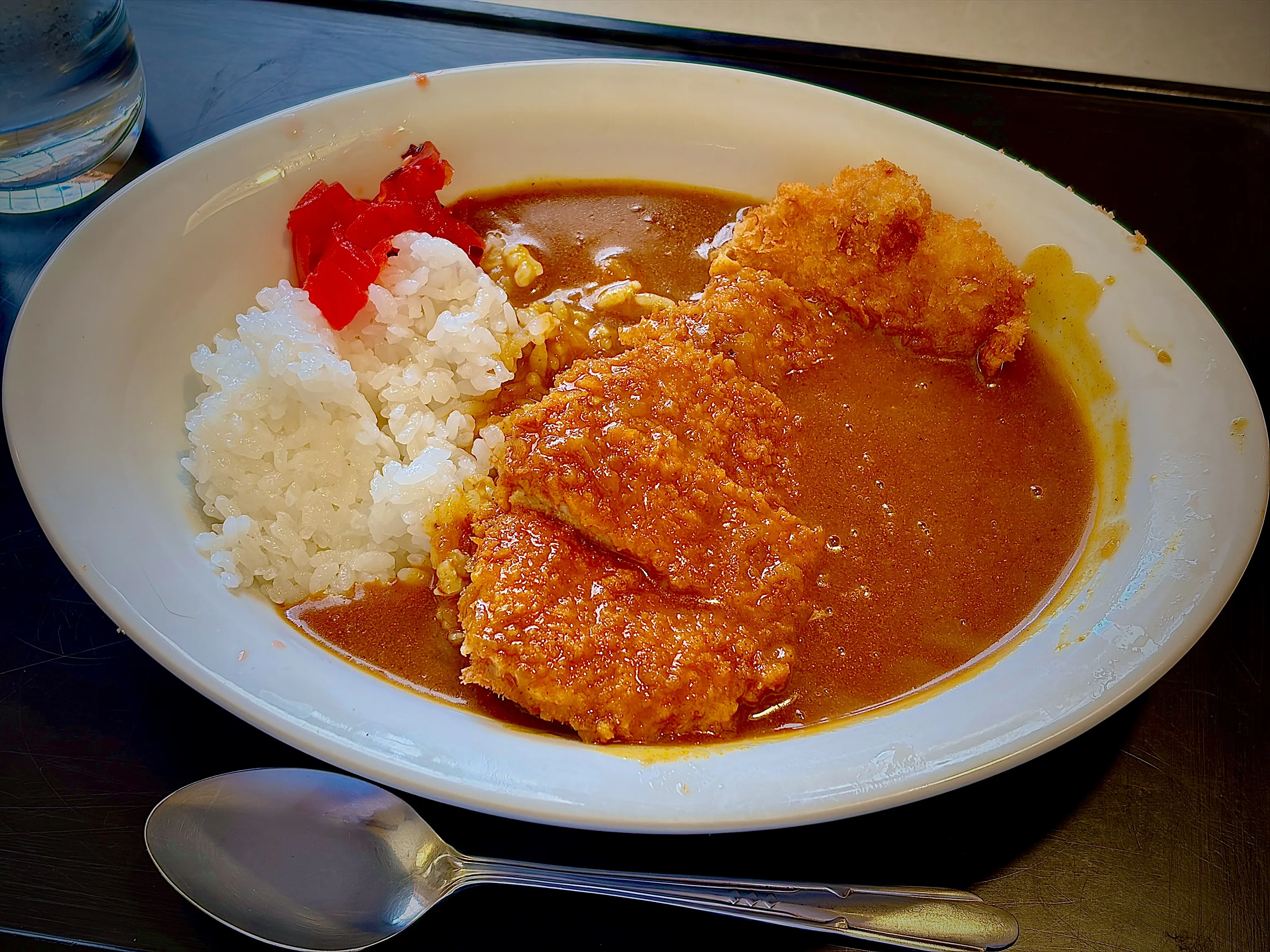 カツ以外、咖喱ソースには肉とか野菜入ってない「素咖喱」なのに妙に美味しい😋