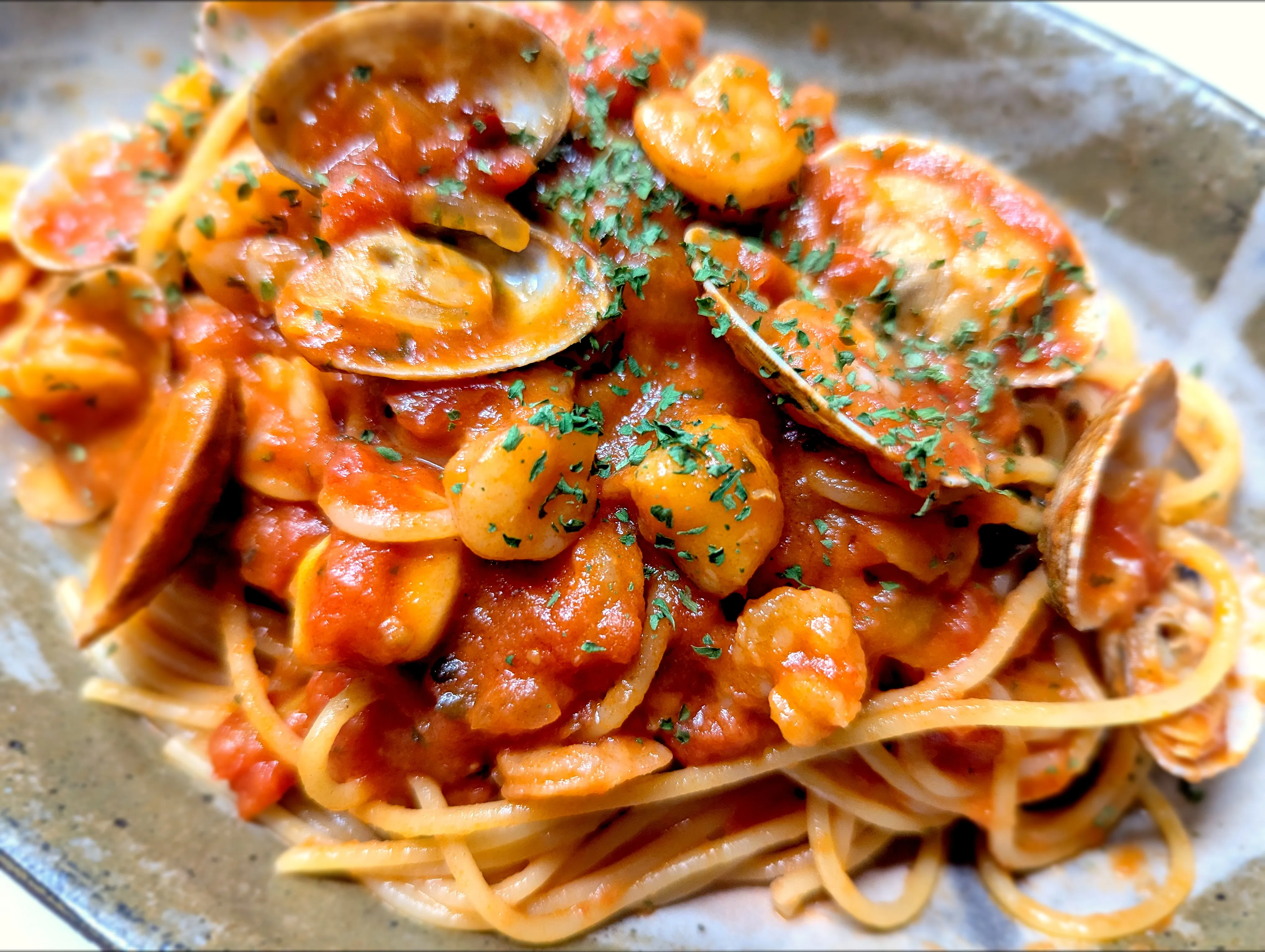 #パスタ #ペスカトーレ #トマトソース #魚介