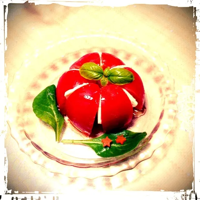 始めまして〜トマトとモッツァレラのカプレーゼ、私より断然センスあってかわゆす〜〜〜٩(✿∂‿∂✿)۶