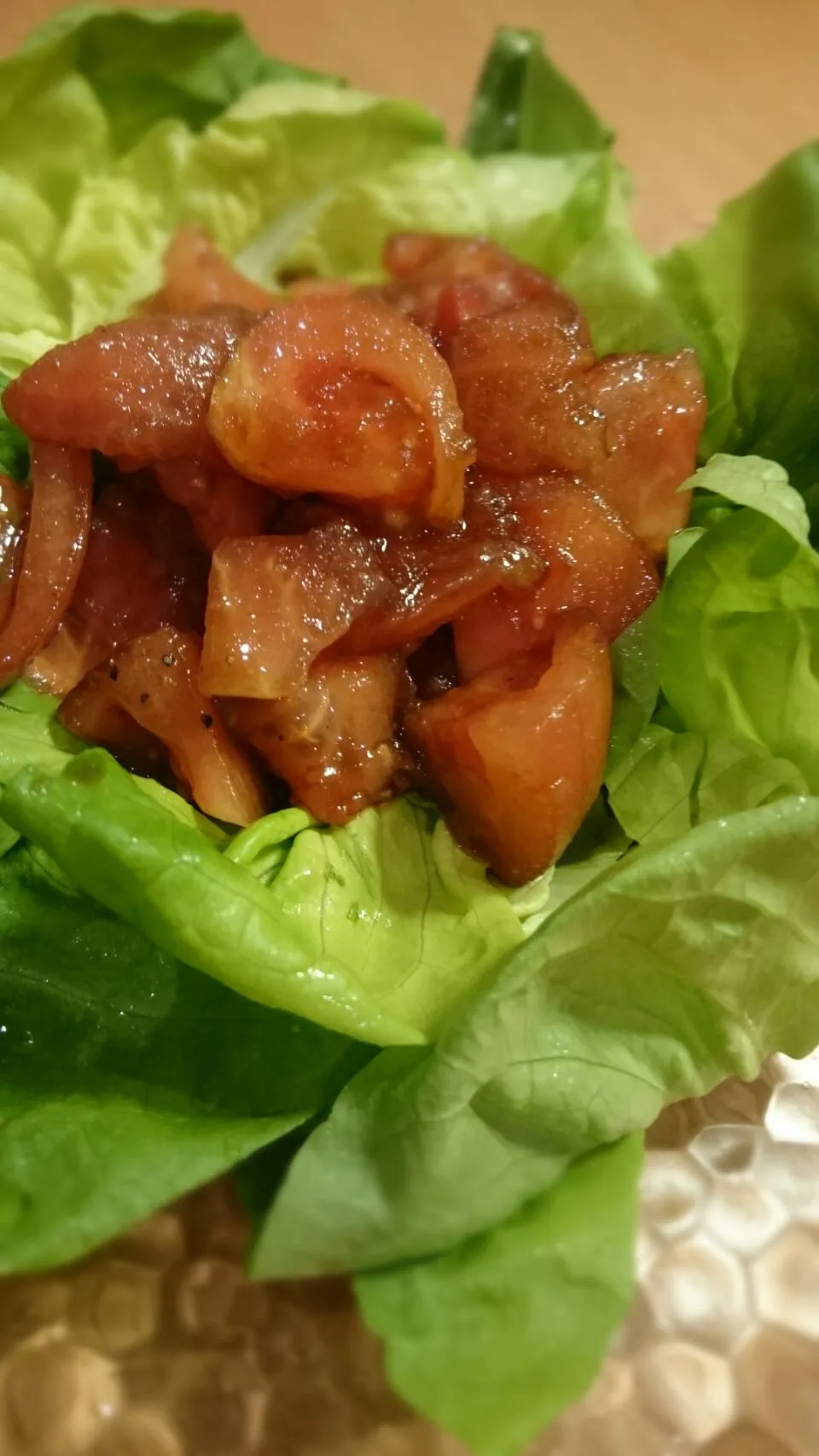バルサミコ酢とはちみつで作ったドレッシングにトマトを漬け込んでみました。