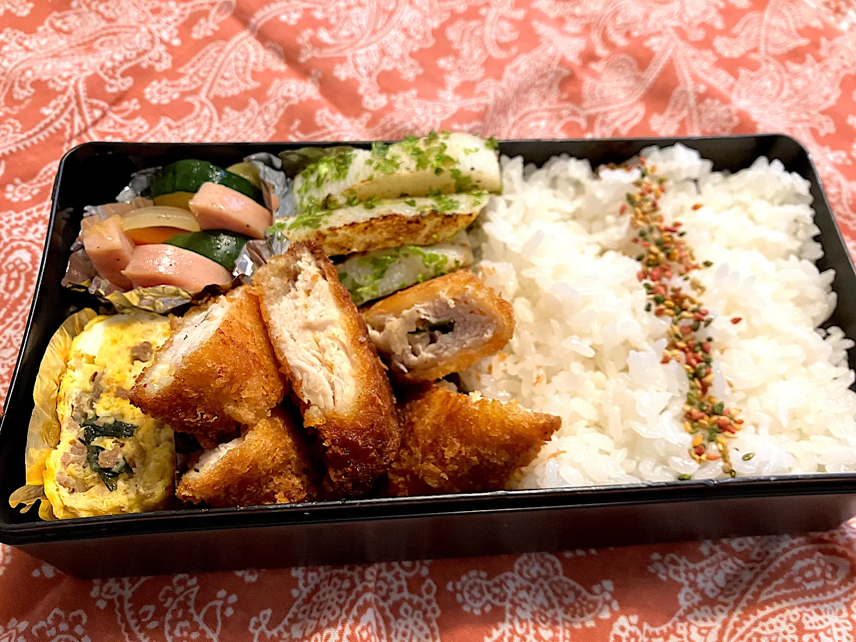 2025.11.6 息子弁当 ◎ササミフライ ◎山芋グリル青海苔味 ◎ポークハム入りラタトゥーユ ◎卵焼き