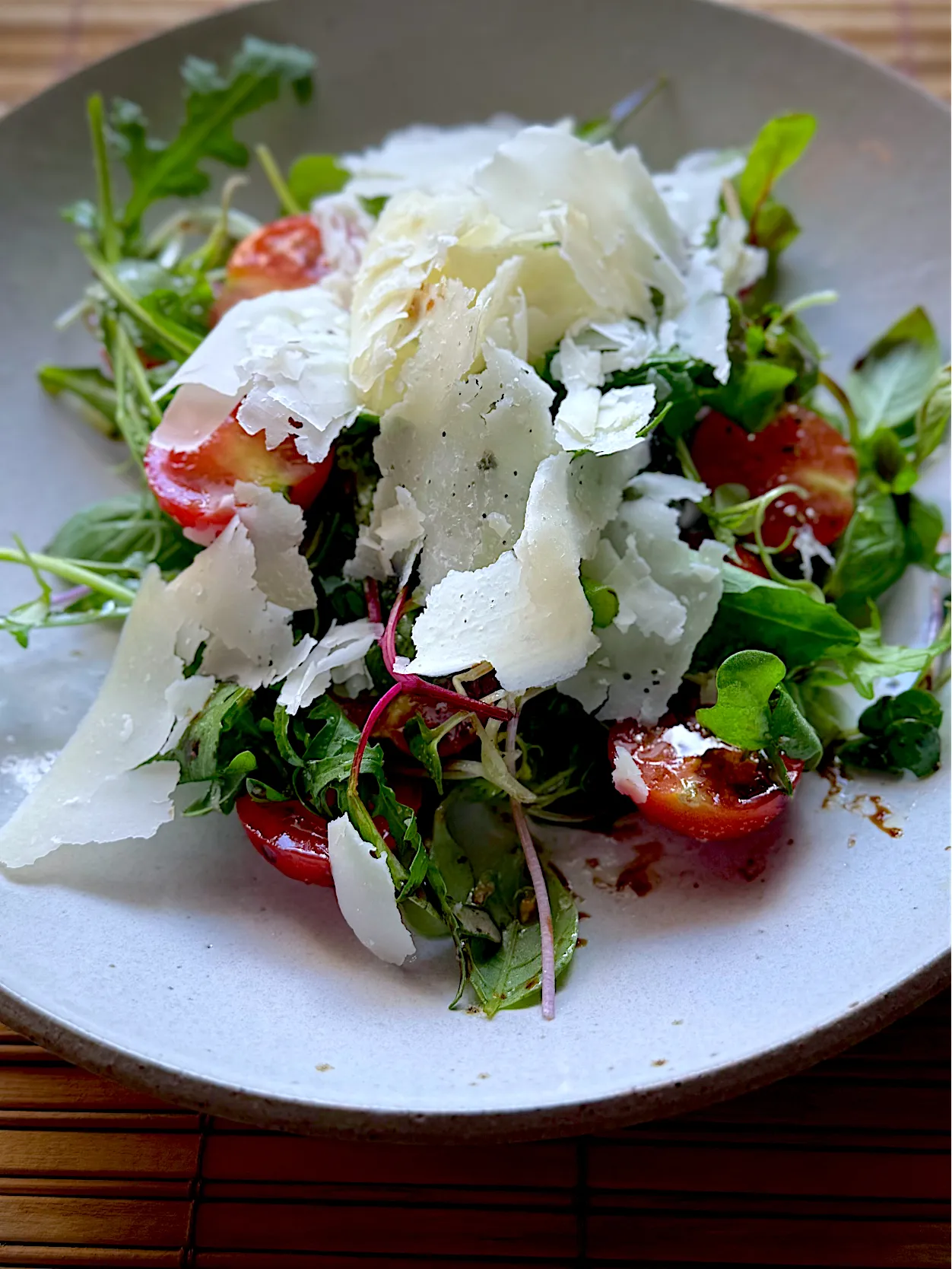 #ルッコラ #ハーブサラダ #ルッコラサラダ #ガーデンサラダ #ミニトマト #チェリートマト #イタリアンサラダ #おうちイタリアン #家庭料理 #モダン料理 #モダンアメリカ料理 #onekiln #onekilnceramics #梶谷農園