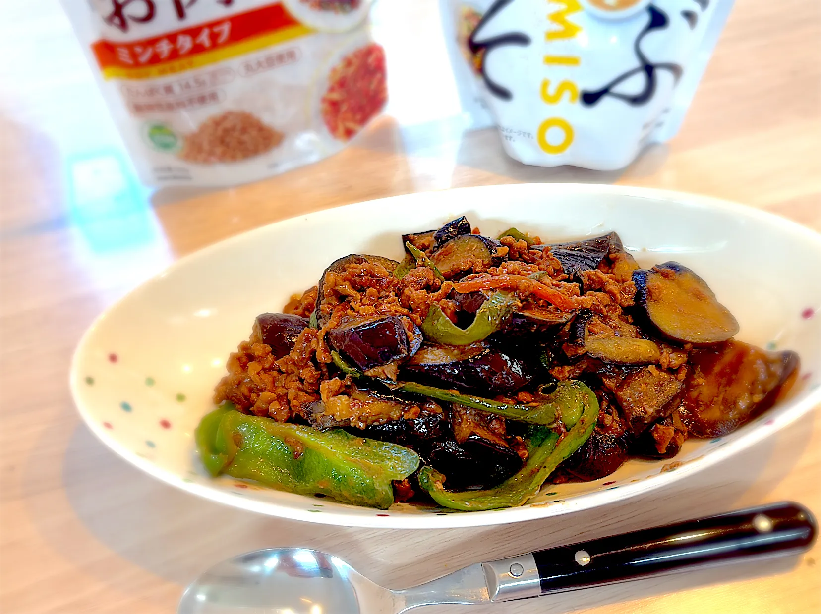 #洗い物少なく #なす #大豆のお肉 #みそつぶ #備蓄品でいざ飯!チャレンジ #肉料理 #PR