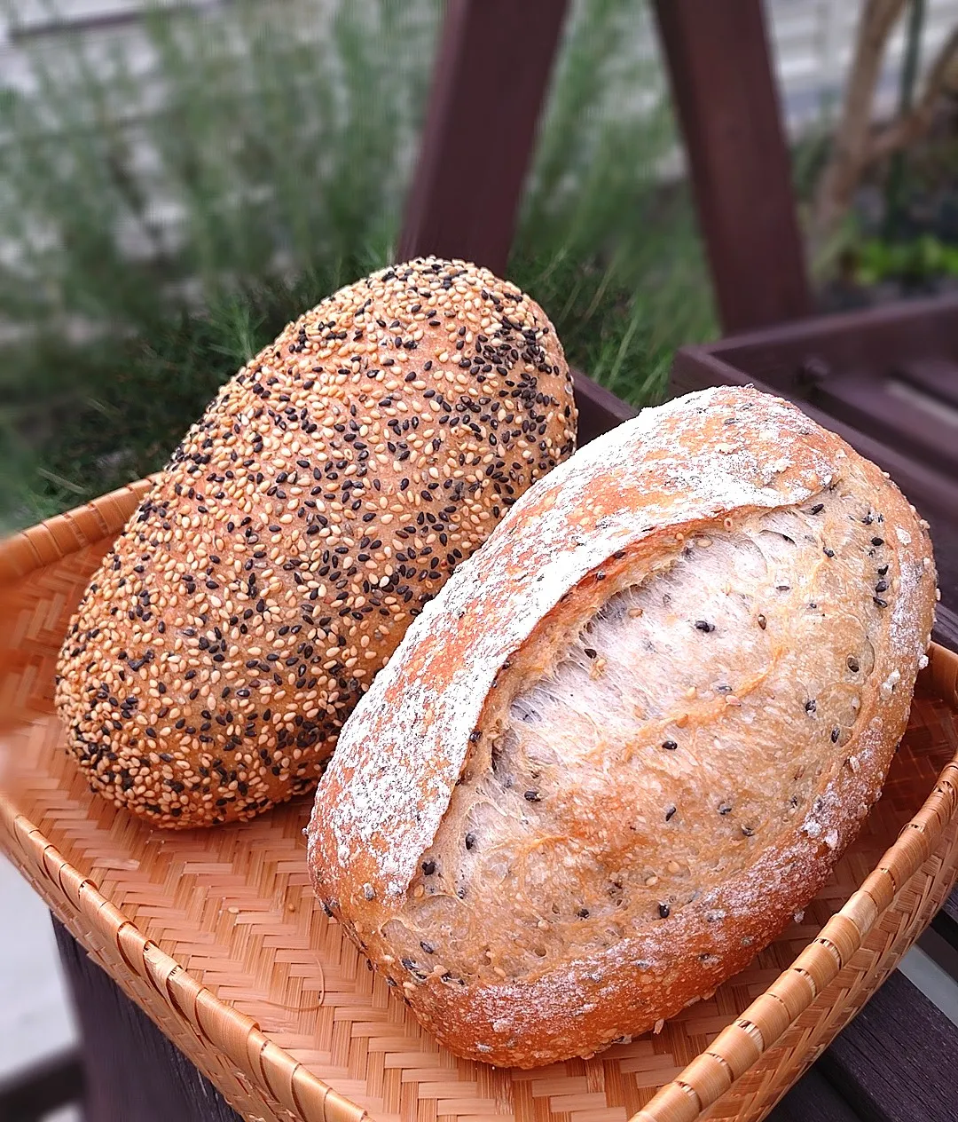 #ごま#カンパーニュ#白ごま#黒ごま#手作りパン #パン作り #おうちカフェ #健康 #オーバーナイト