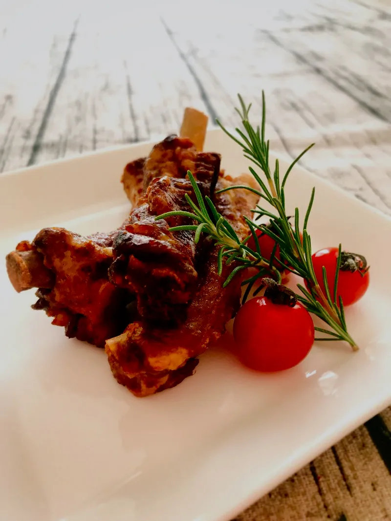 ※煮詰めている途中で、上下を裏返すと、全面に美味しそうな色が付きます。ただかなり柔らかくなっていて骨からお肉が取れやすいので、気をつけて裏返して下さい。