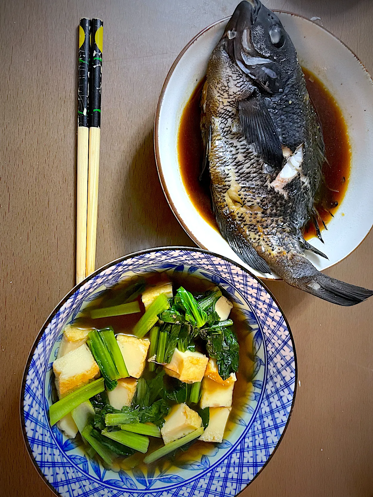 グレの煮付けと小松菜の煮浸し