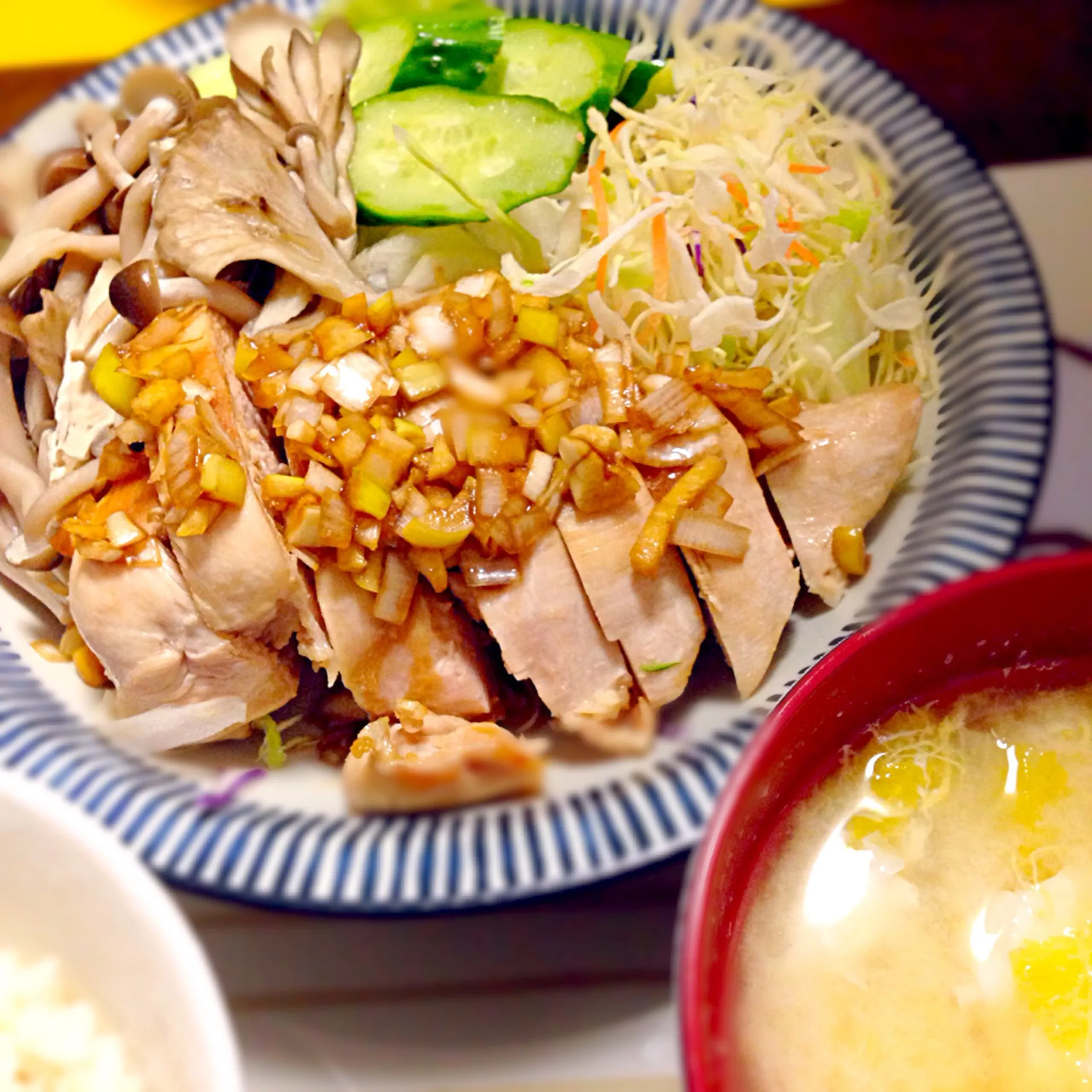 鶏肉を丸ごと茹でたあとにちょこっと焼いて、油淋鶏もどき。茹で汁は何に使おうか考え中ー…