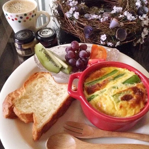 アスパラ.南瓜.ウインナーのキッシュで朝パン♪|kirariさん