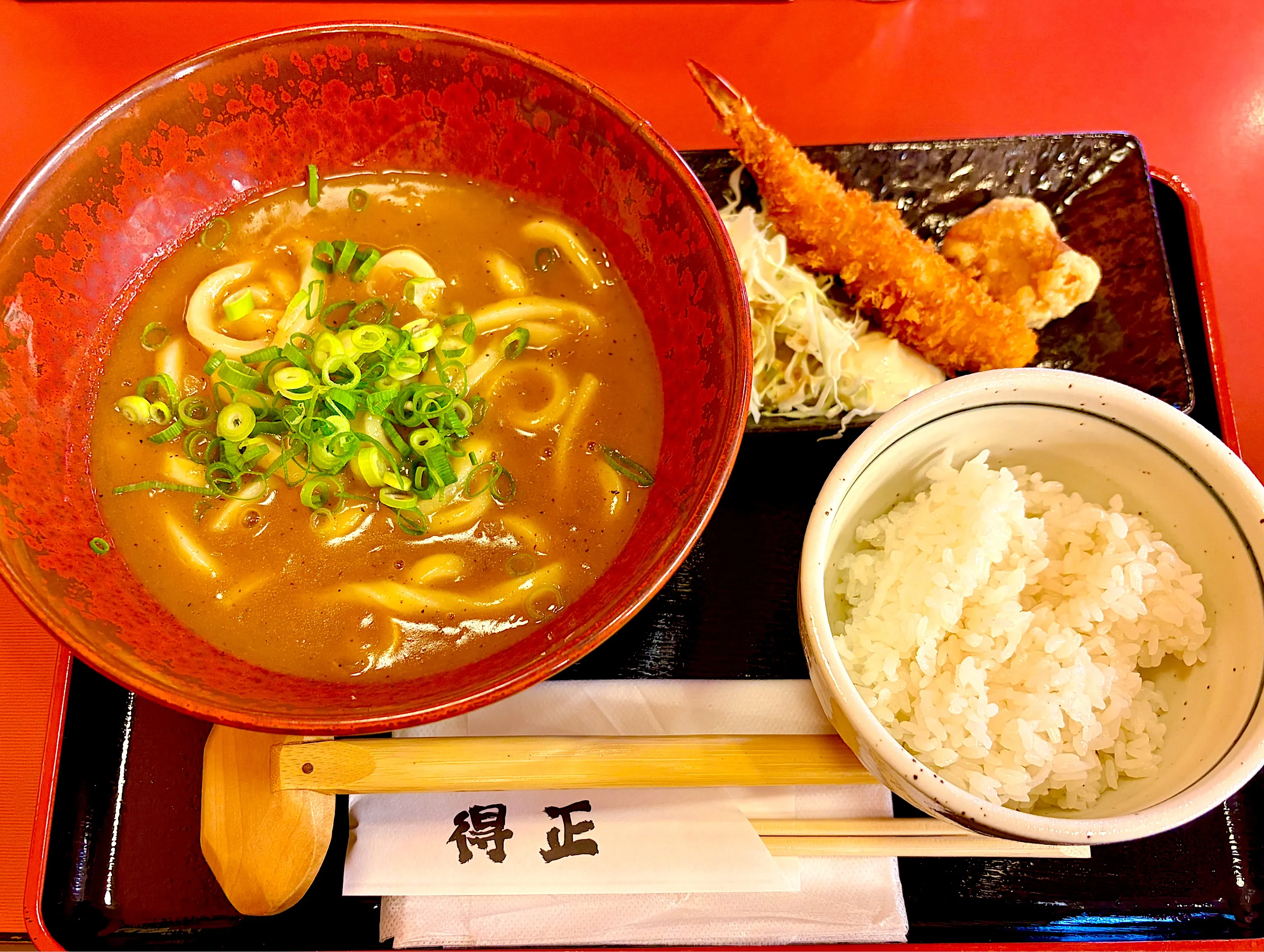 という事で、今日は得正の咖喱饂飩金曜日限定セットが今日の昼餉。