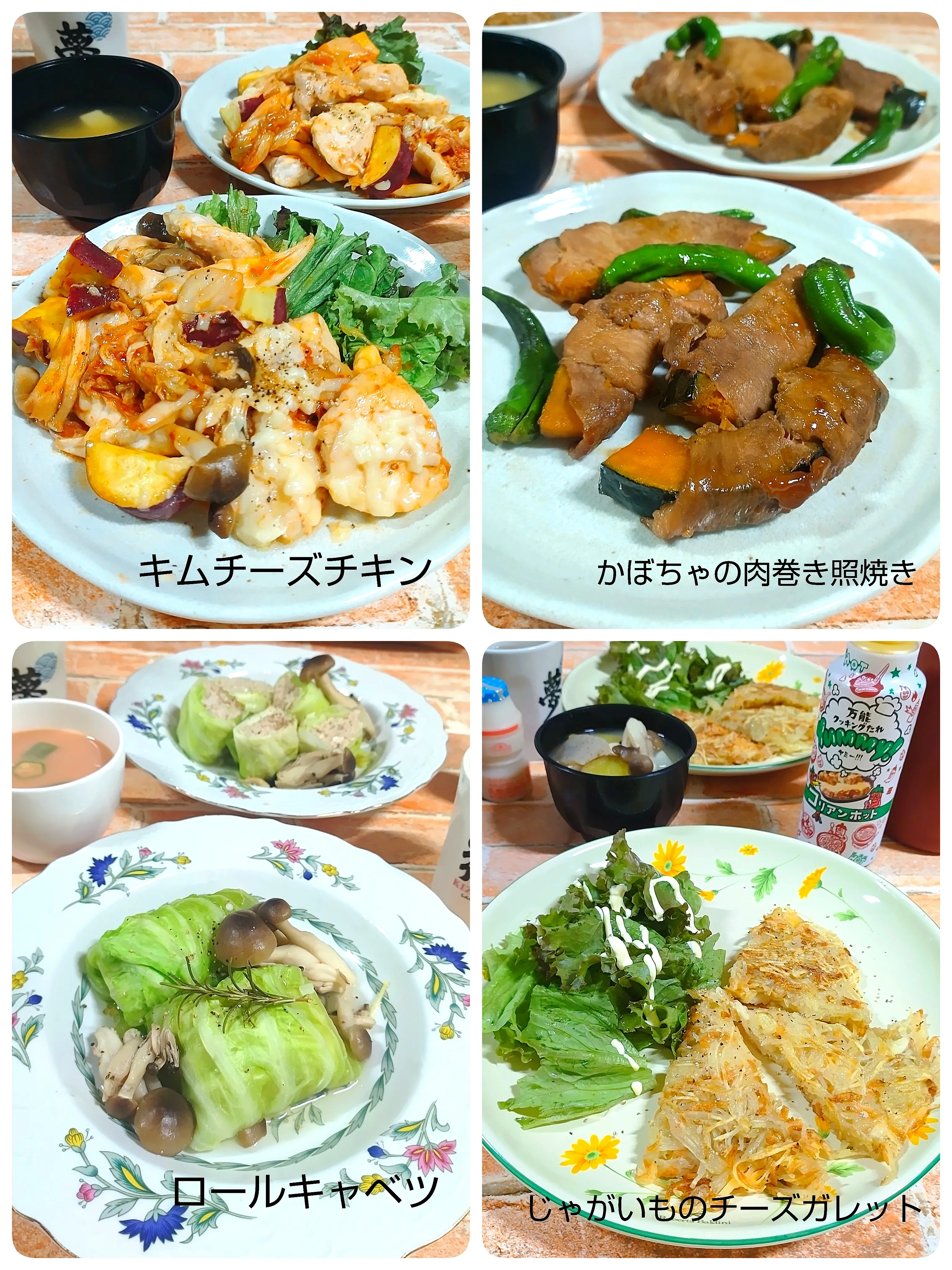 キムチーズチキンもカボチャの肉巻きもロールキャベツもじゃがいものチーズガレットもめっちゃ美味しそう゚+.゚(´▽`人)゚+.゚✨