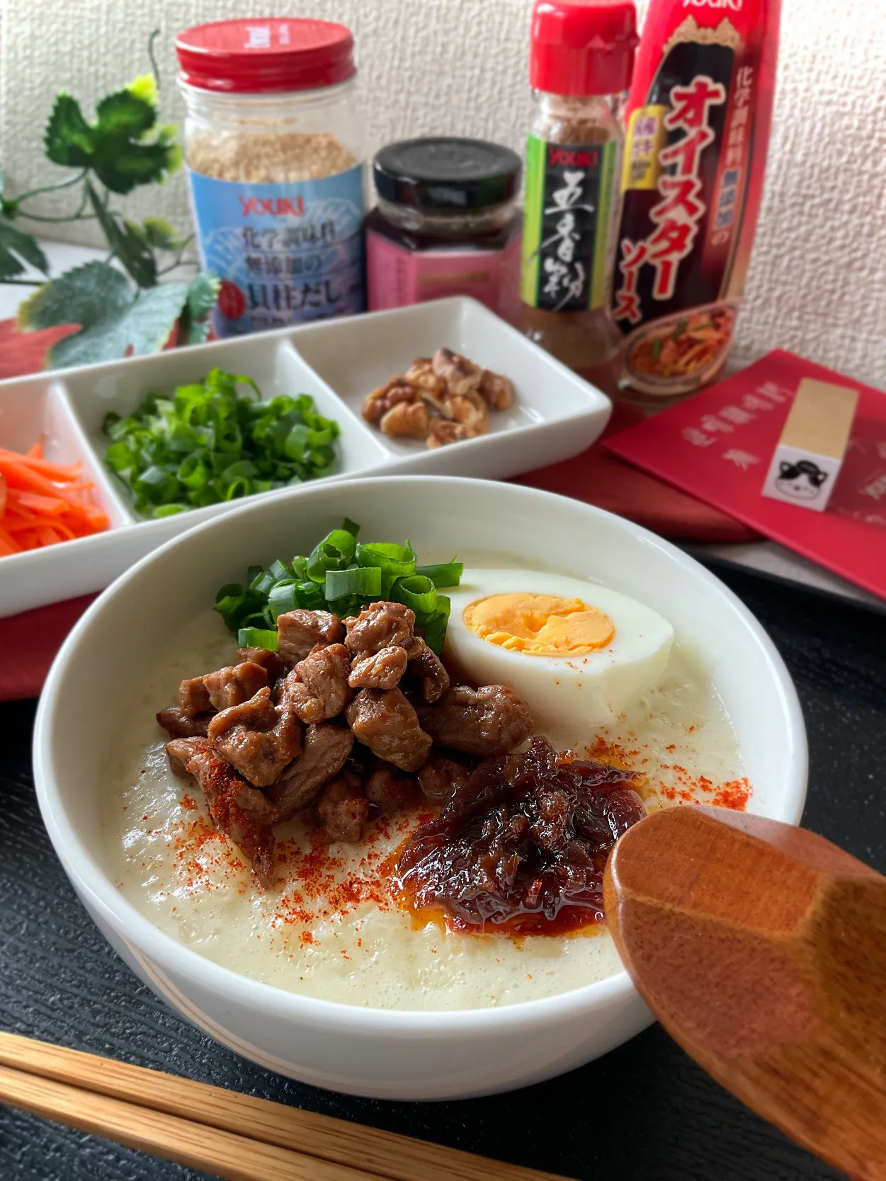 貝だしや桜エビ醤の入った台湾風粥😍✨