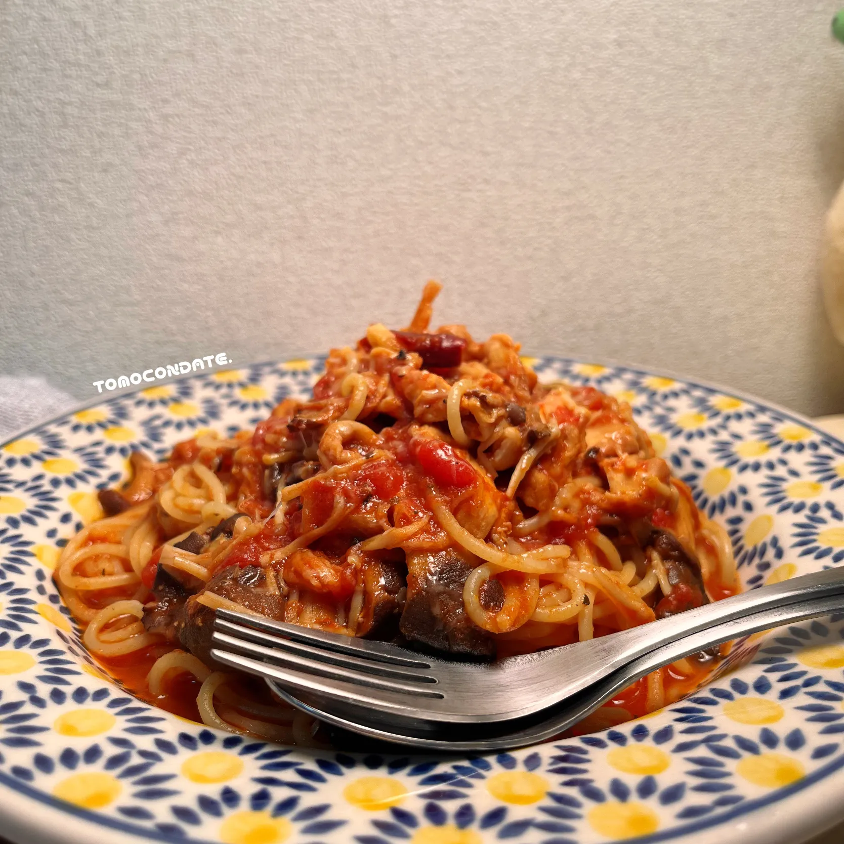 手羽トロとキノコのトマトソースパスタ♡|🇯🇵ともこちゃん。さん
