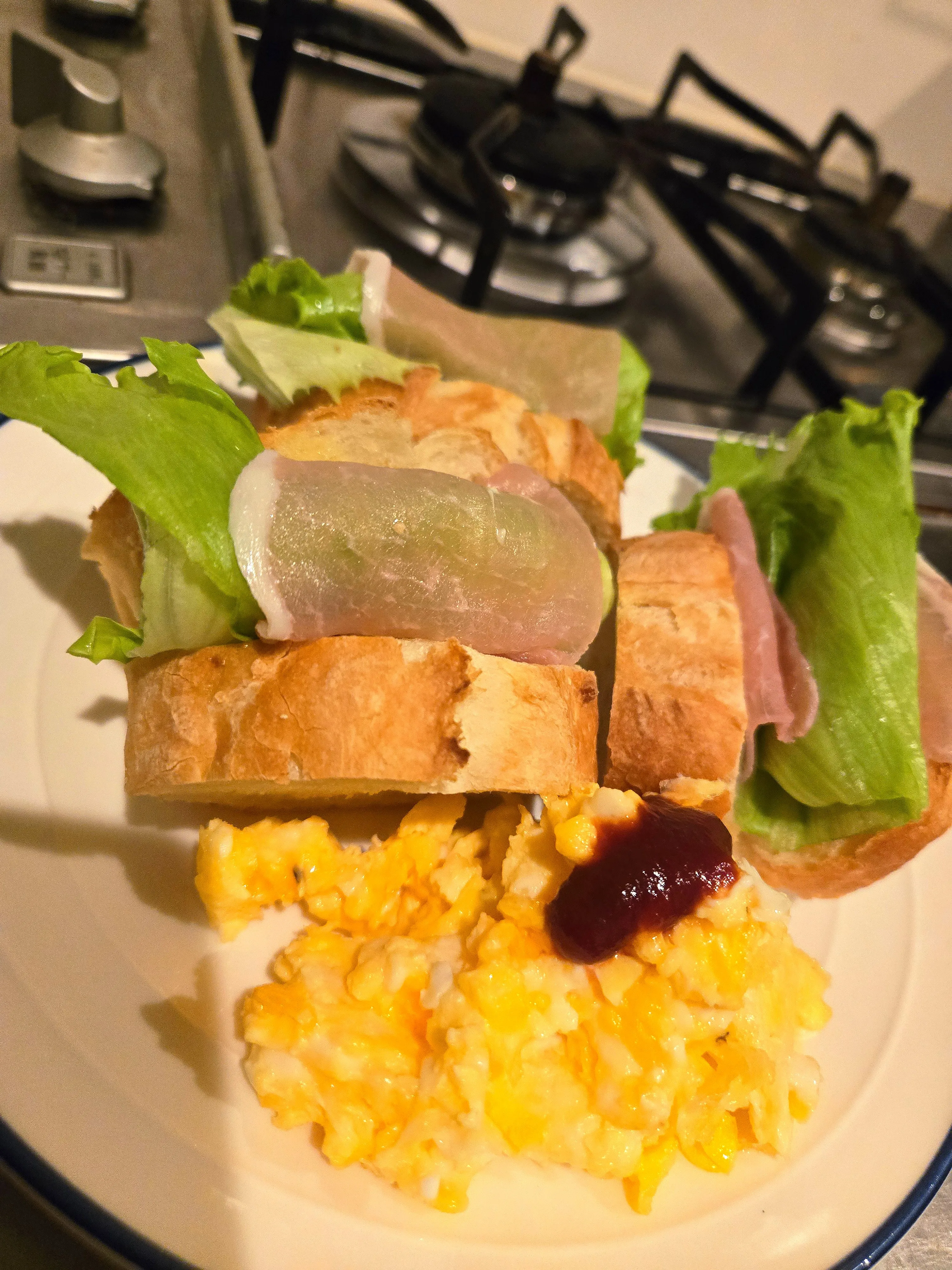 9/20のお昼ごはん~生ハムのルッコラのバケットサン...