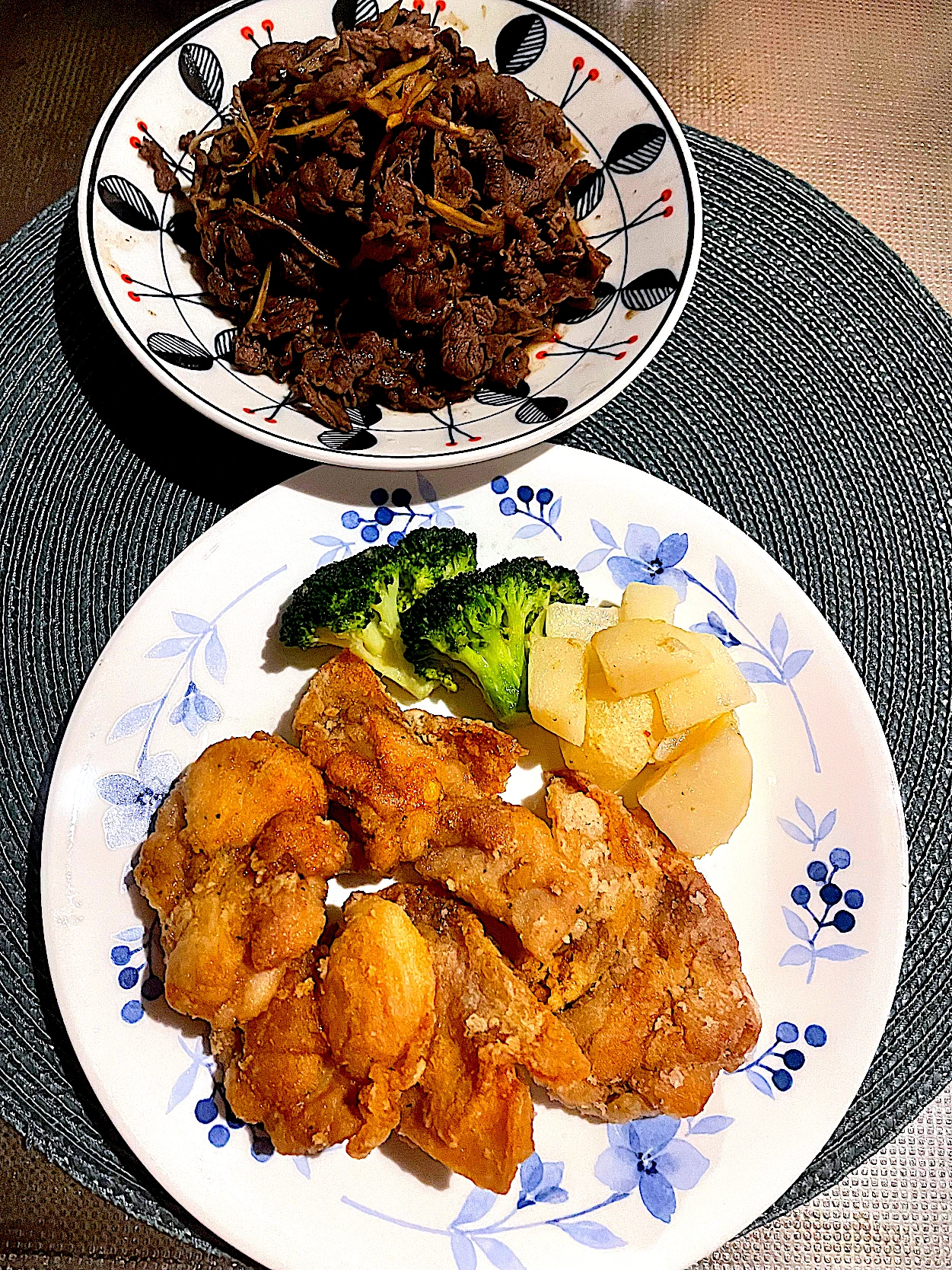 #今日の晩ごはん#チキンタツタ#ブロッコリー#じゃが芋#なめことお豆腐のお味噌汁#私のおいしい写真