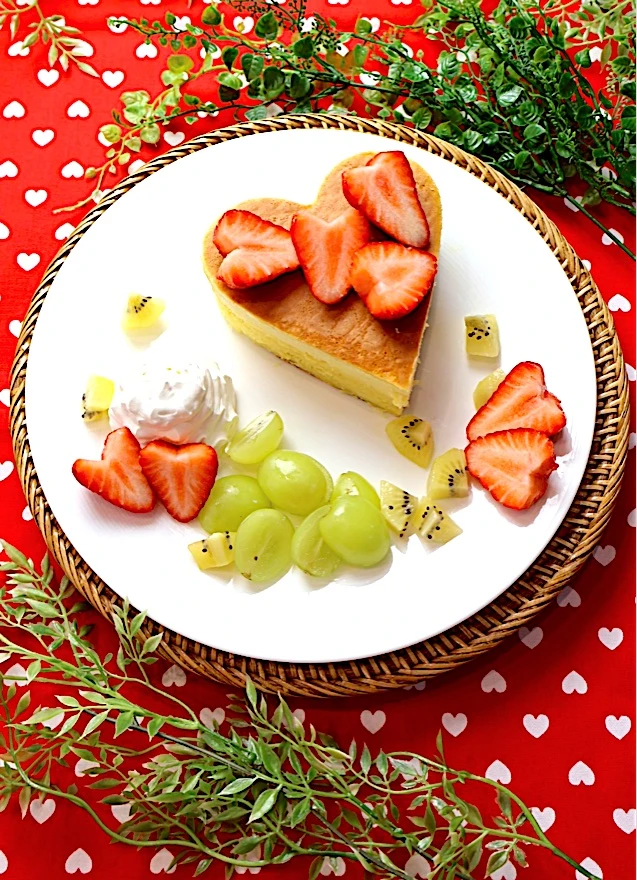 可愛いハート♥️のイチゴのパンケーキ゚+.゚(´▽`人)゚+.゚✨