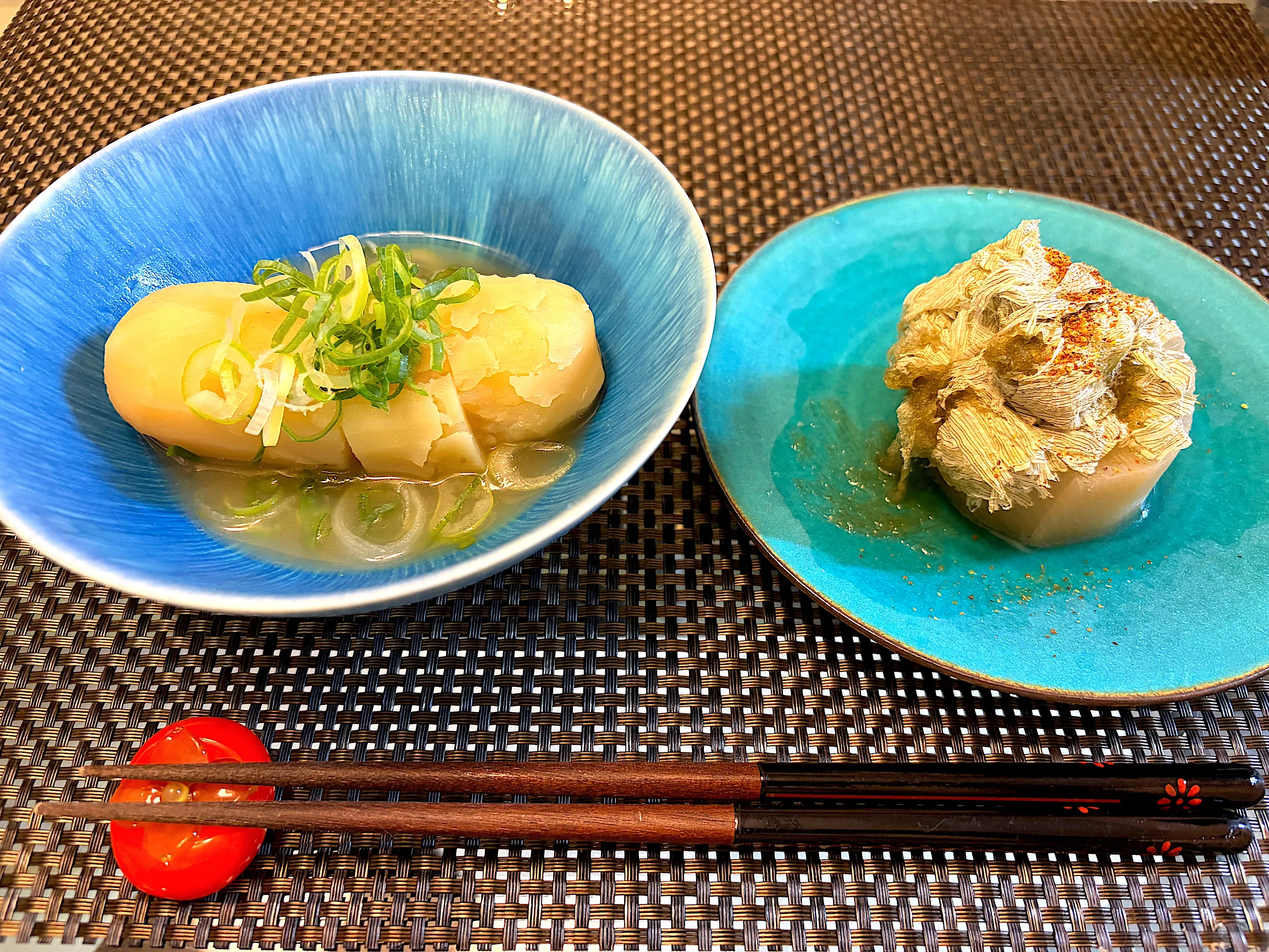 昨日追加したメークイン🥔と、味変の為に大根におぼろ昆布のせて一味🌶️振ったヤツ…