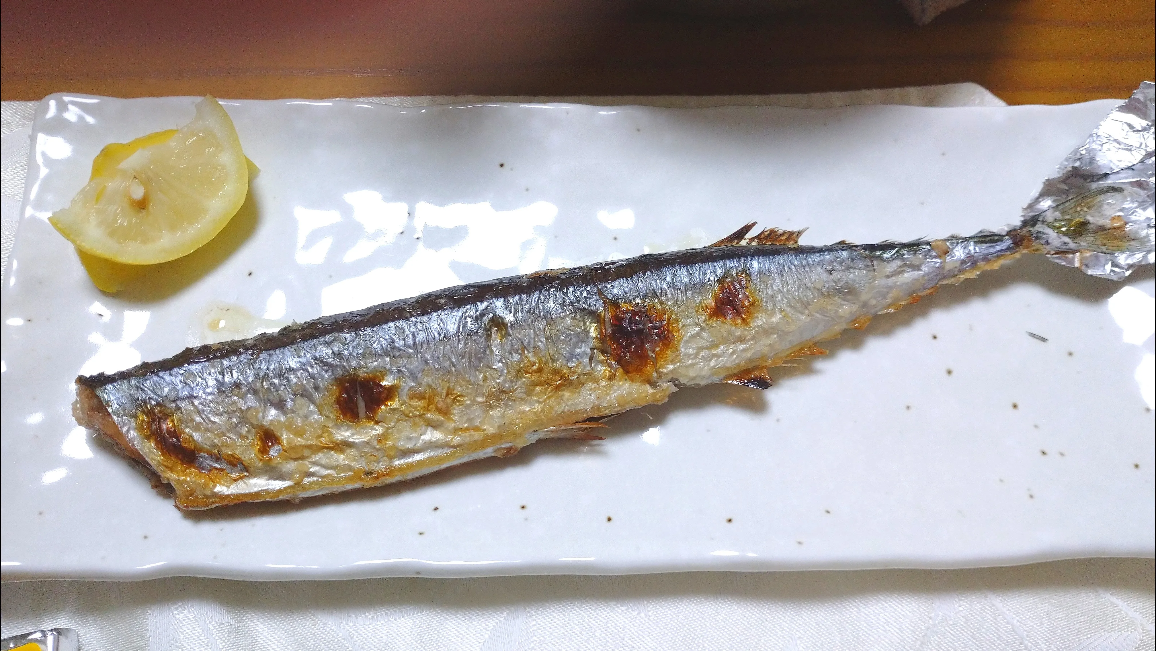 帰宅して早速魚焼きグリルで塩焼きにしました。
