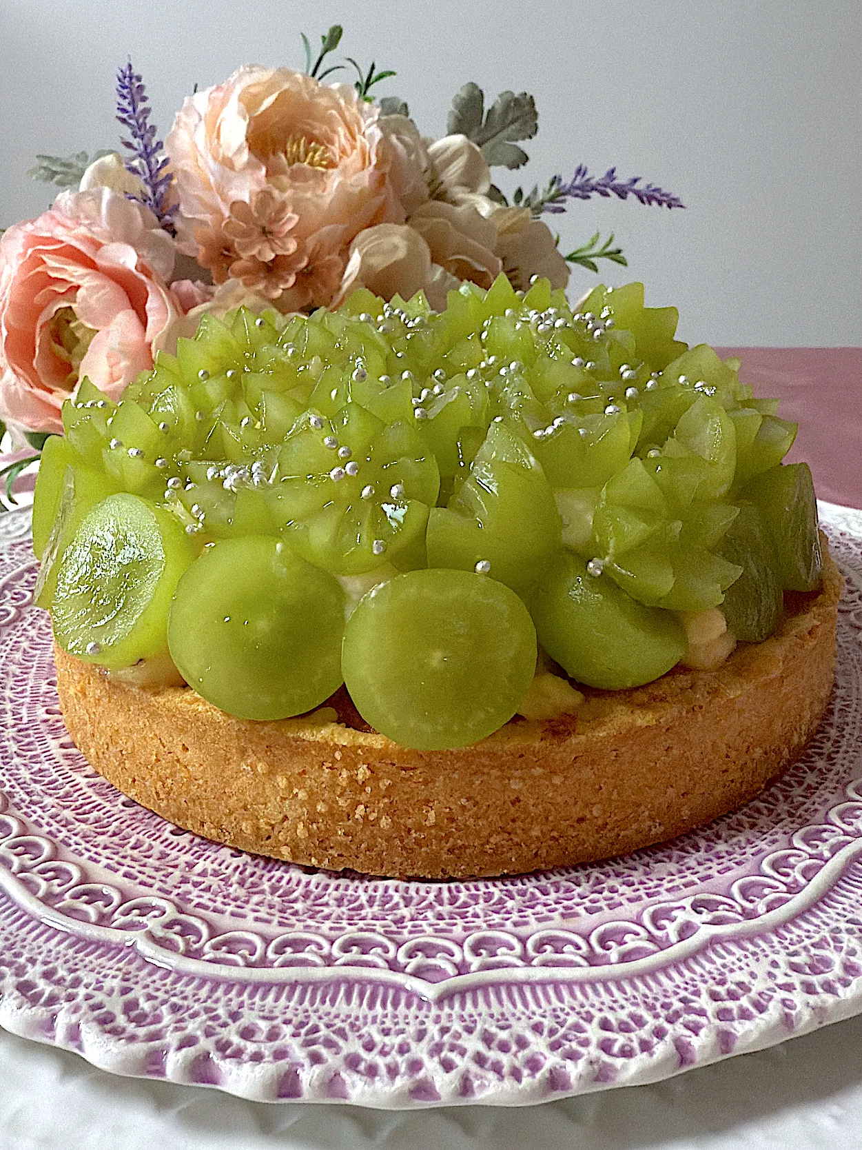 綺麗な色合いのシャインマスカットタルト✨とっても美味しそうです😍