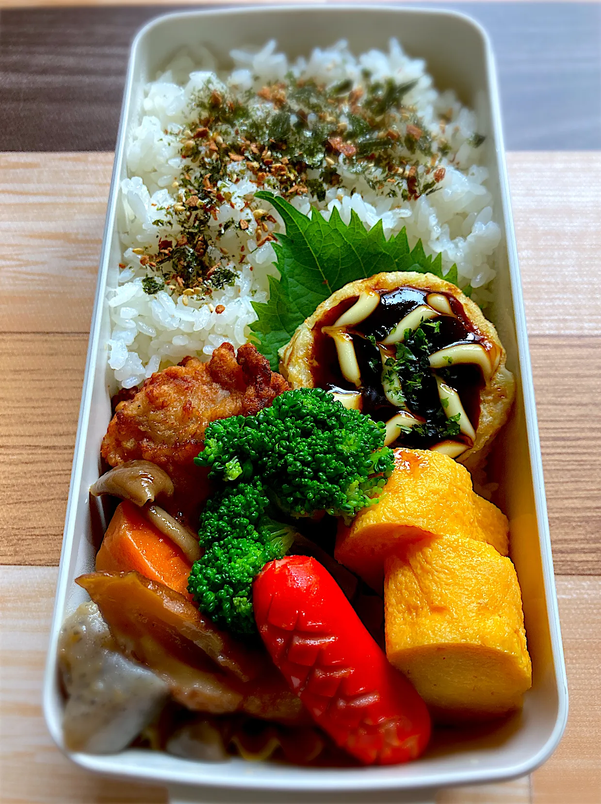 唐揚げ・お好み焼き・卵焼き・赤ウインナー・こんにゃく炒め