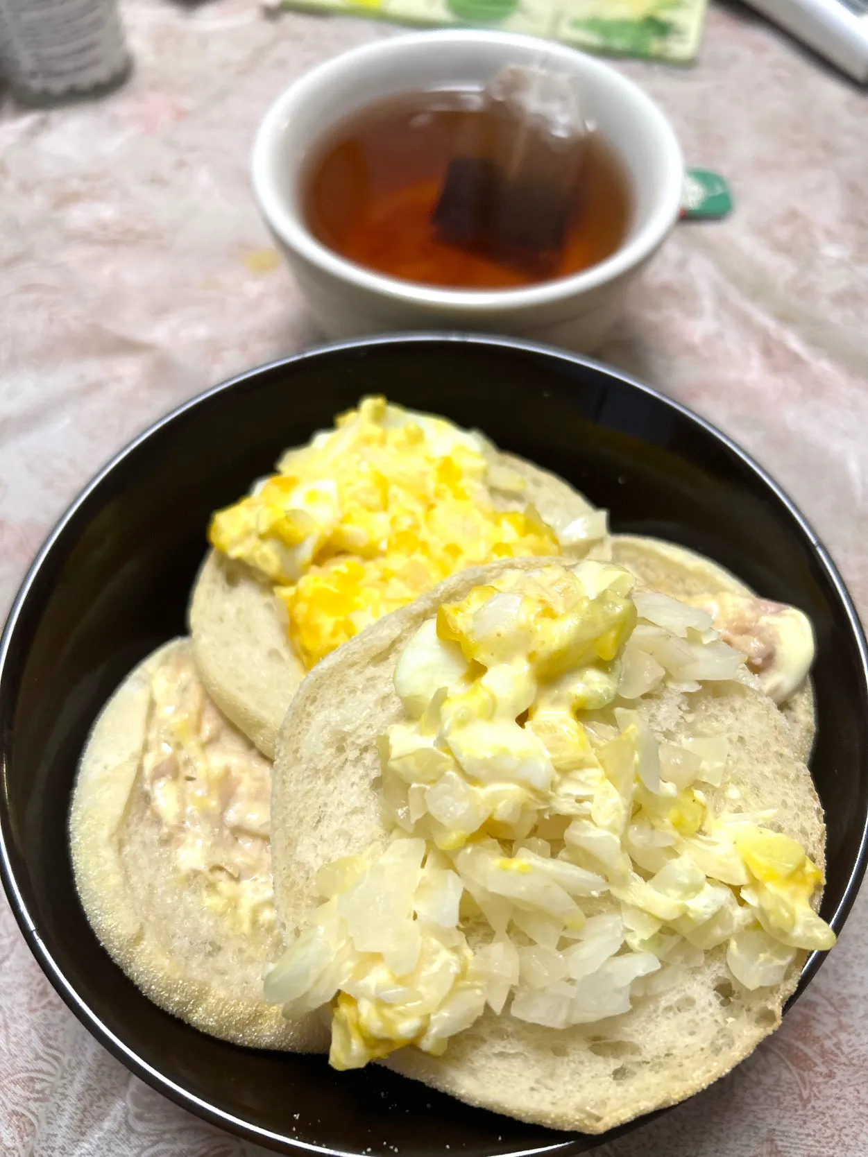 母が市場で玉ねぎをたくさん買ってきたので、オープンサンドでボリュームたっぷりです #サンドイッチ #マフィン #朝食 #サンドイッチ