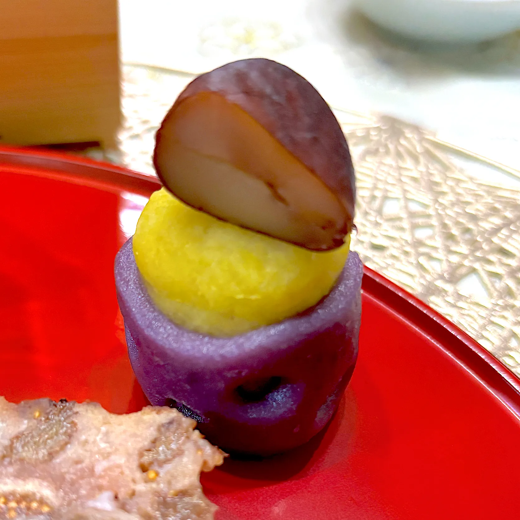 まるで和菓子のような華やかさ、だけど甘さが控えめだからお酒にも合う栗きんとんに仕上げました!