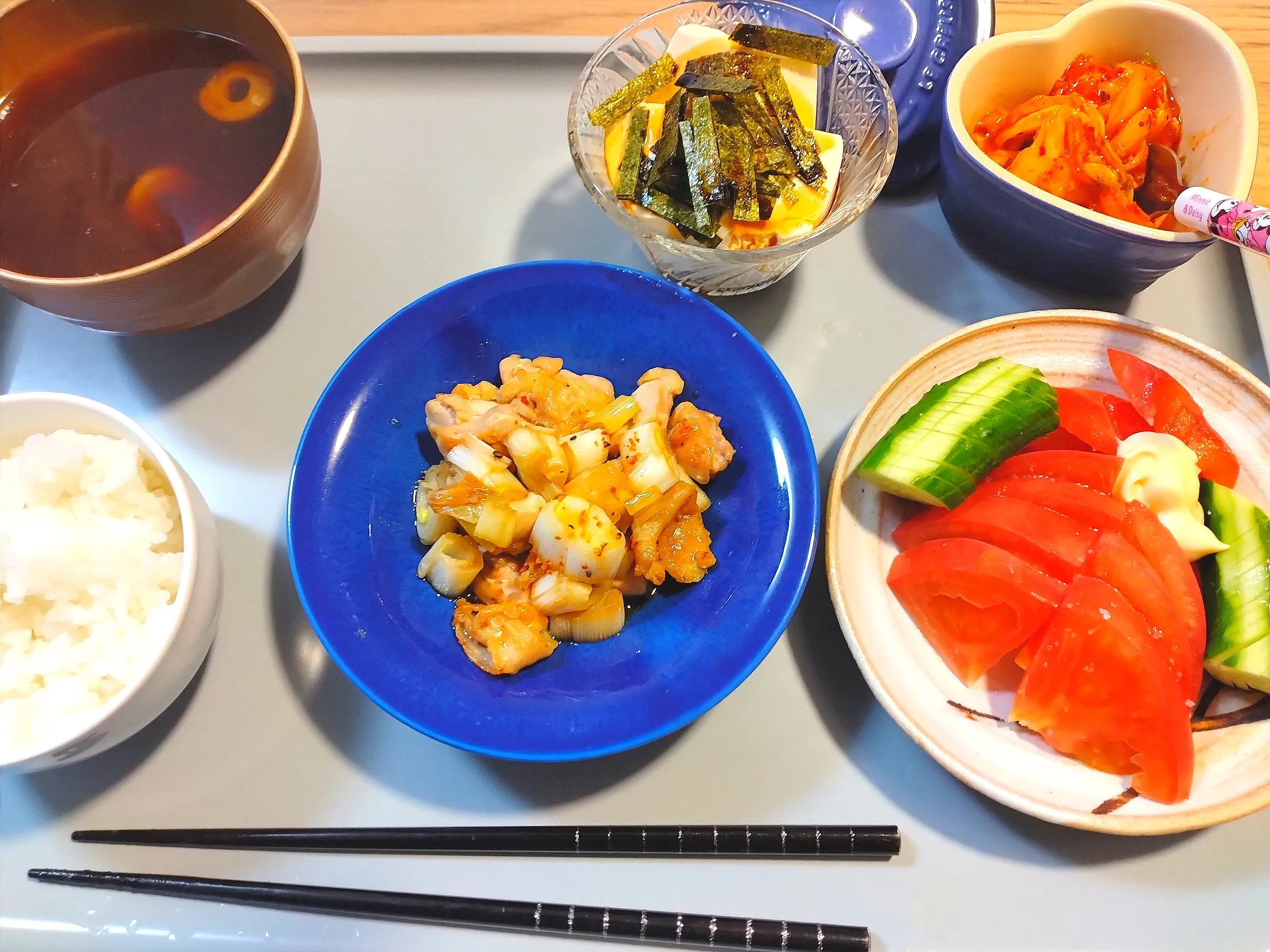 焼き鳥風炒め 冷やしトマト きゅうり 冷奴