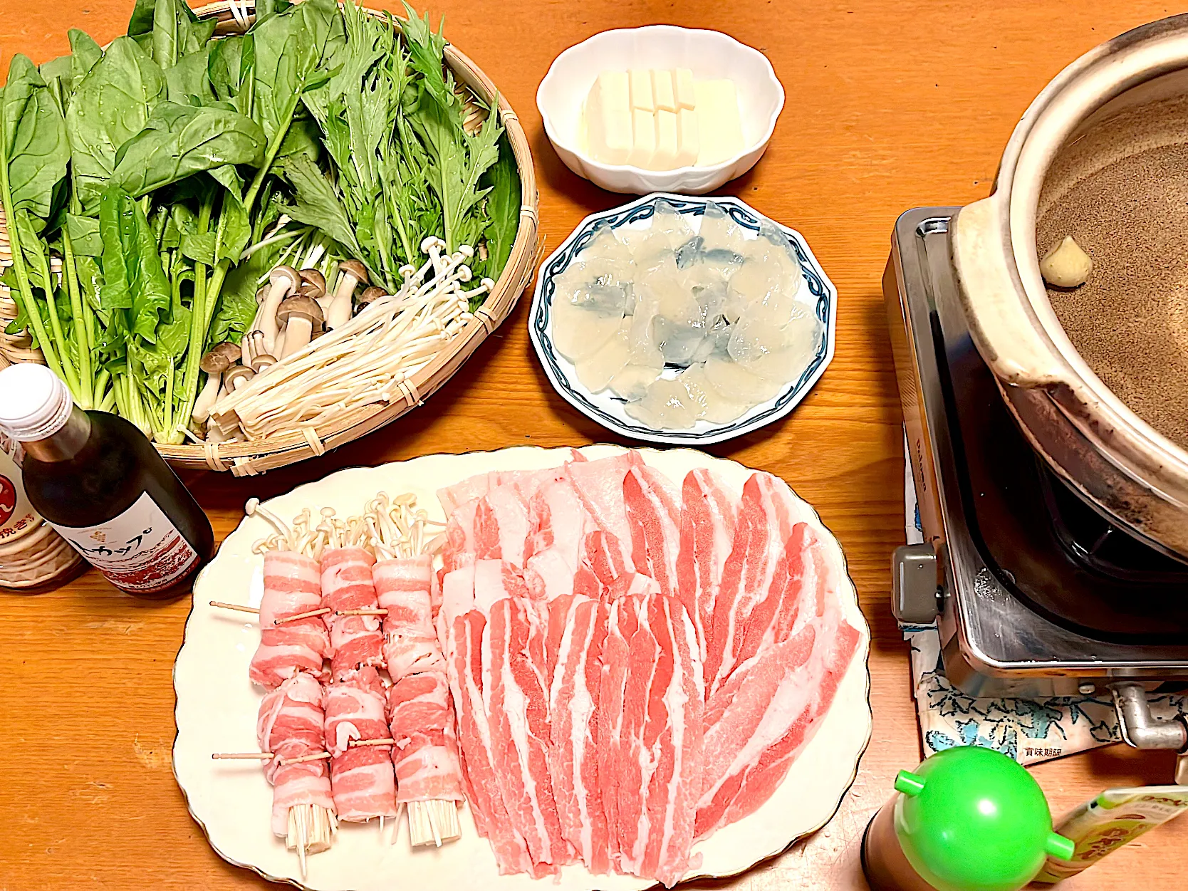 夜は #常夜鍋 #刺身こんにゃく 〆はうどん