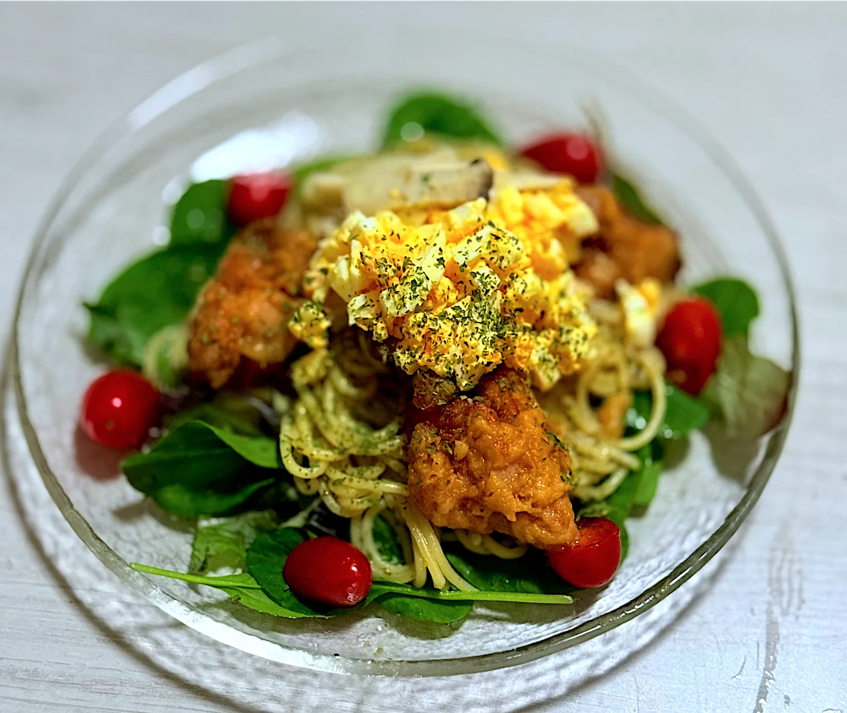 #簡単料理 #おうちごはん #ワンプレート #トマト #パスタ #ジェノベーゼ #唐揚げ