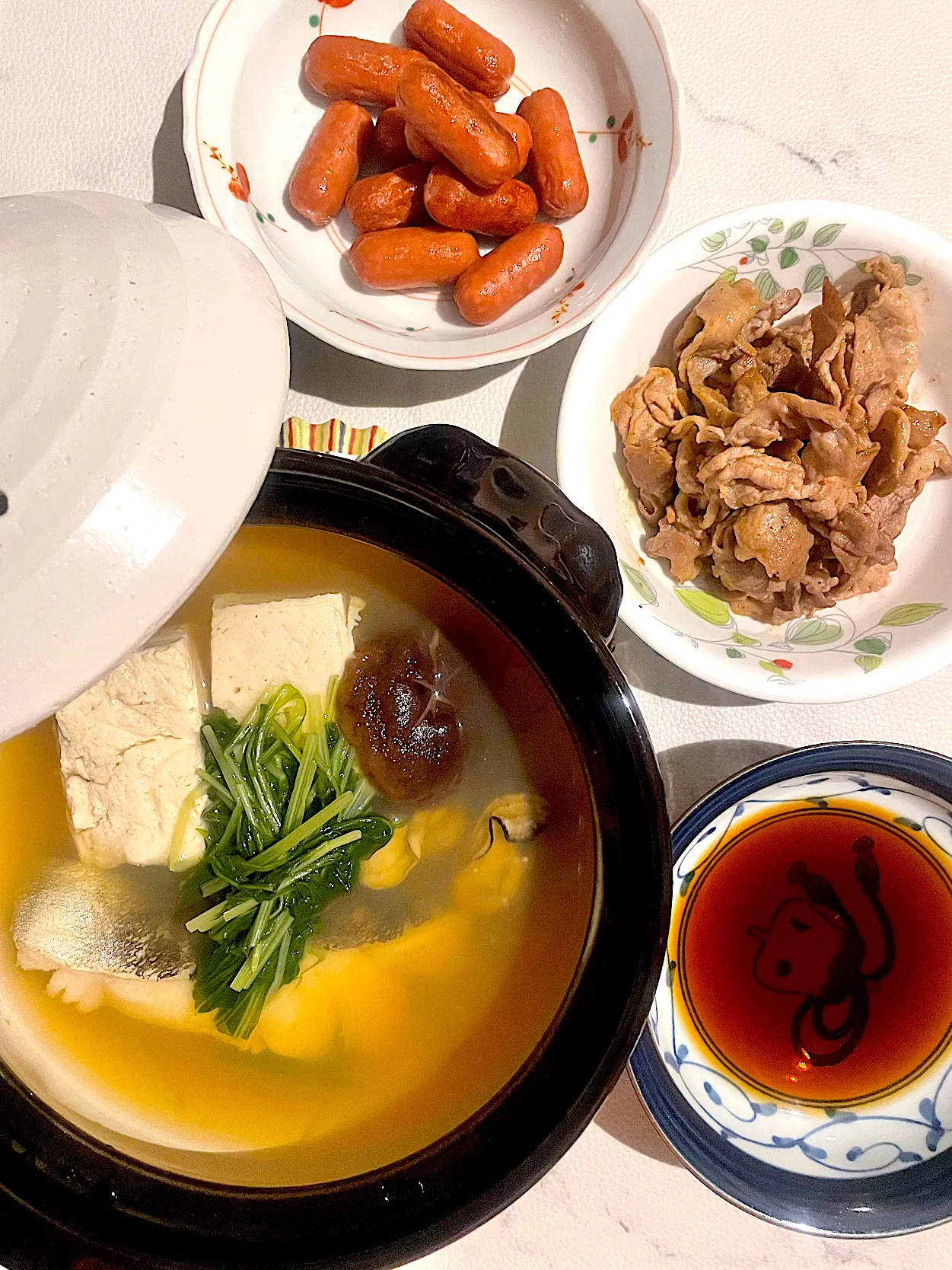 湯豆腐にするつもりが売り場で牡蠣や鱈を見たら食べたくなって入れちゃった😅