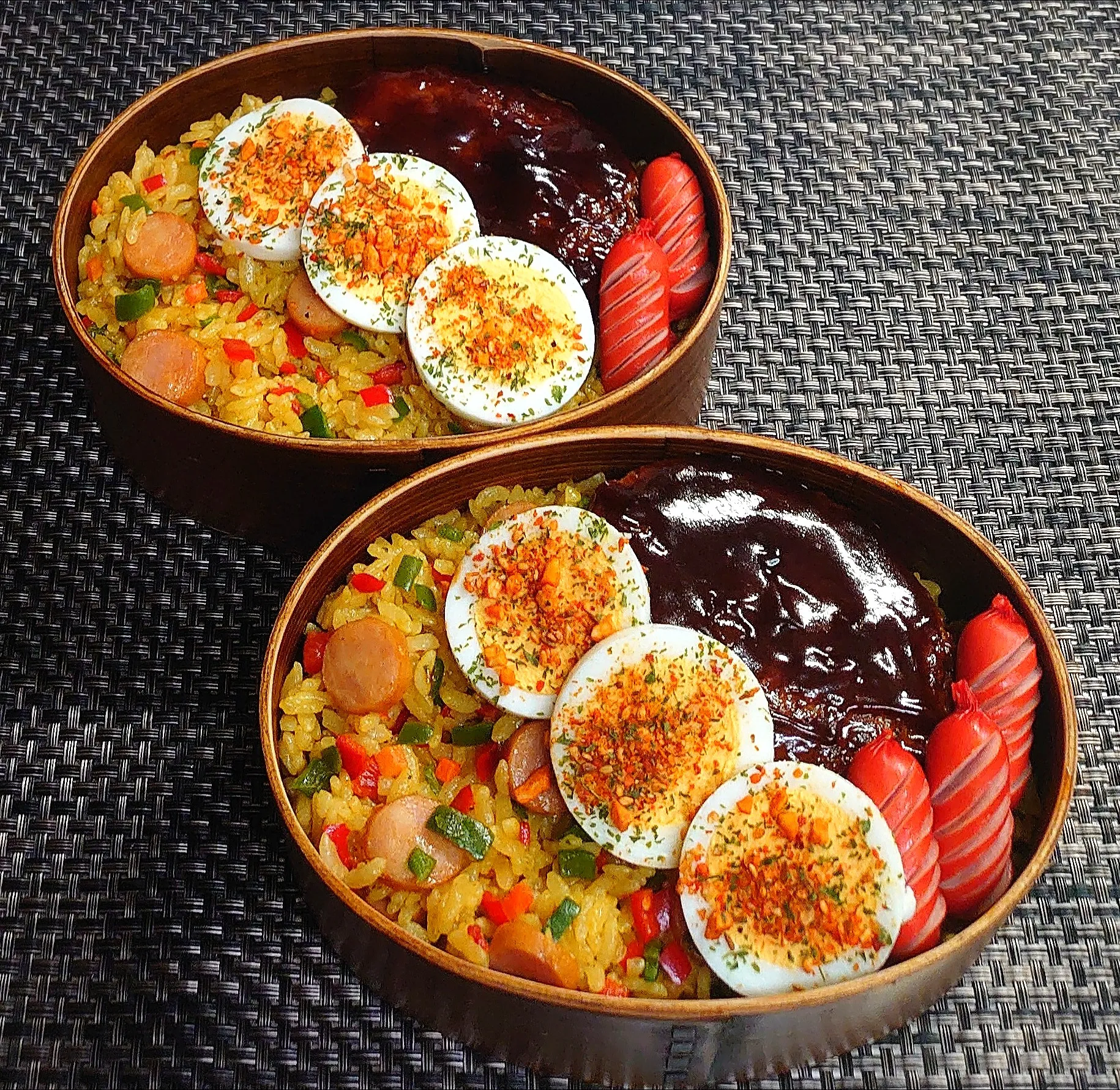 カレーピラフとハンバーグのお弁当美味しそう💕