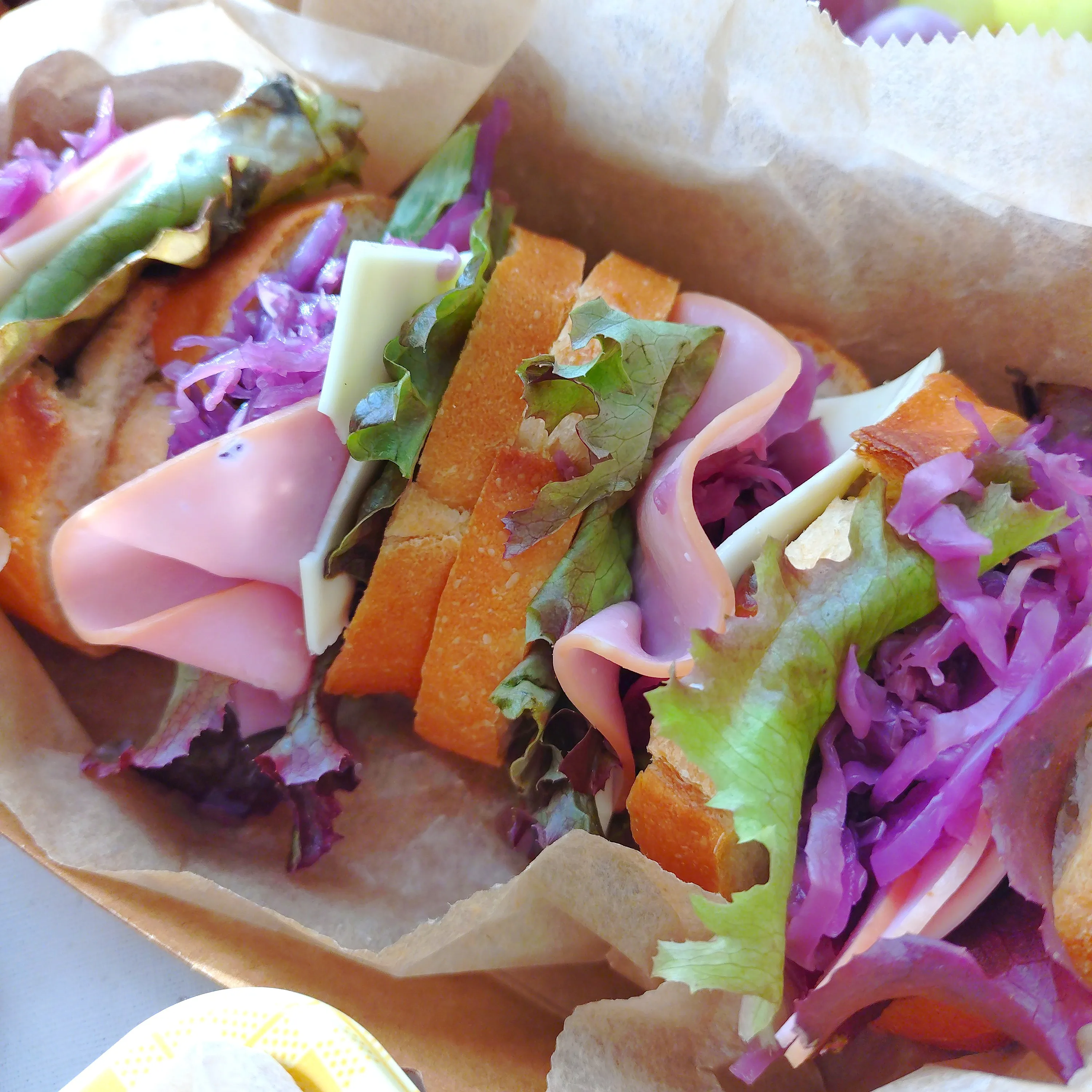 ハム、チーズ、紫キャベツのラペのサンドイッチ