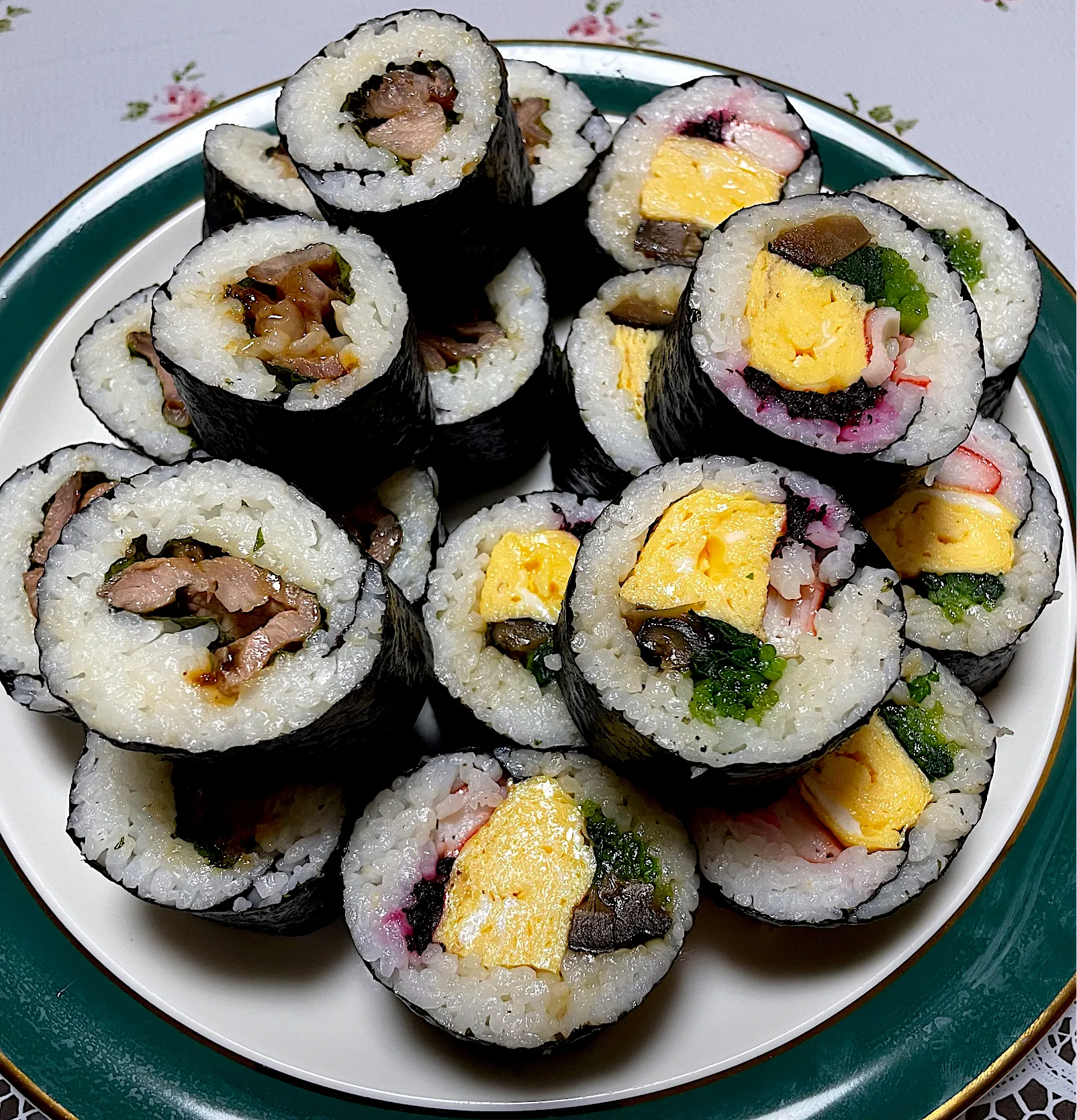 卵焼き・しいたけの含め煮・ミツバ・オホーツク・赤紫蘇(梅干しに使った物)