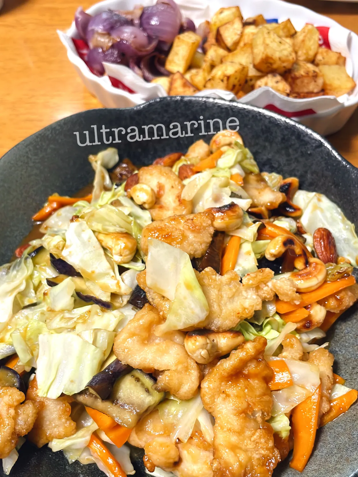 #とり天 #野菜 #キャベツ #にんじん #玉ねぎ #あんかけ #アンチョビ #ポテト #アンチョビポテト #紫玉ねぎ