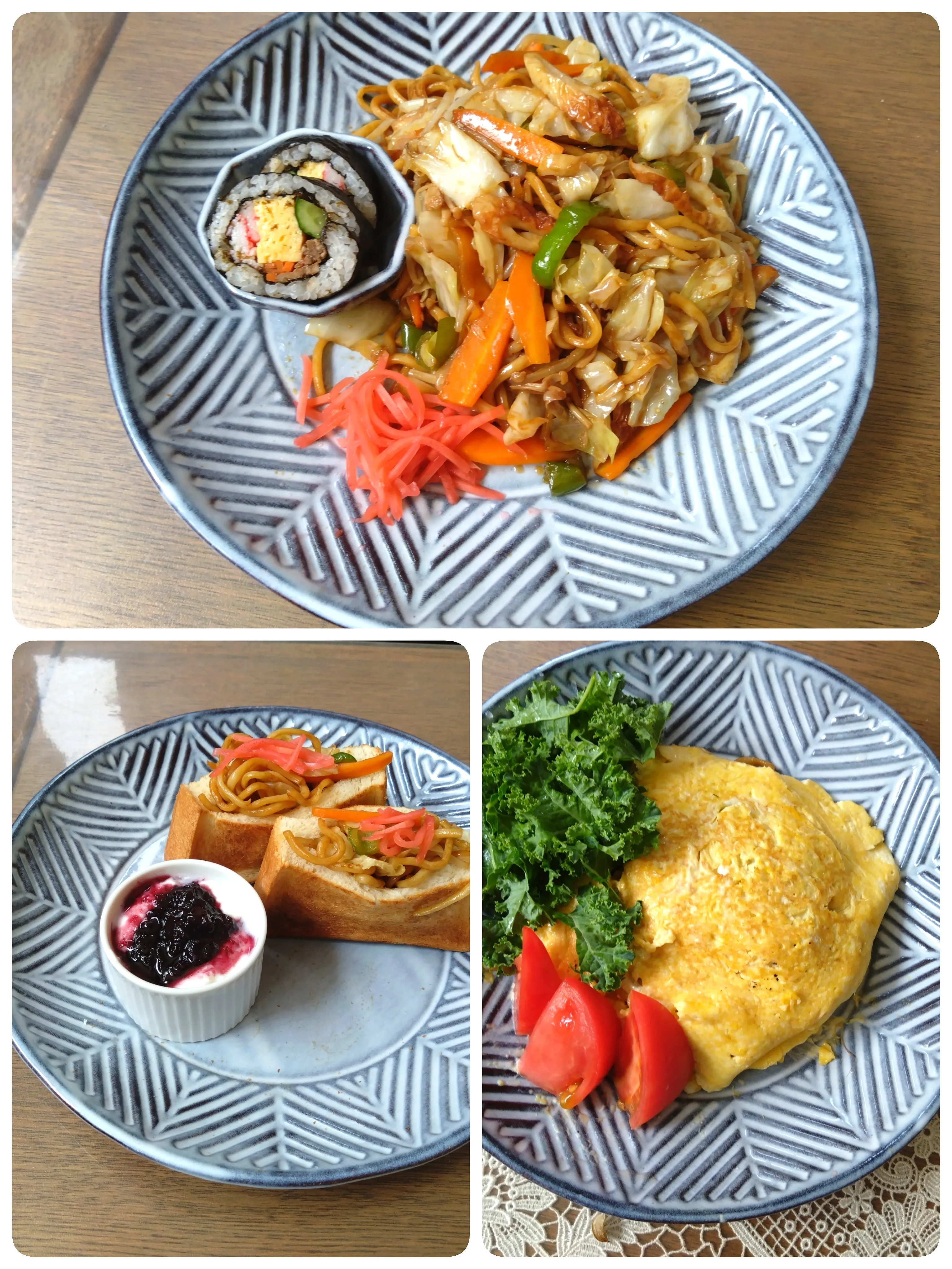 焼きそば2/3.と前日の生姜焼きの残りでミニキンパ