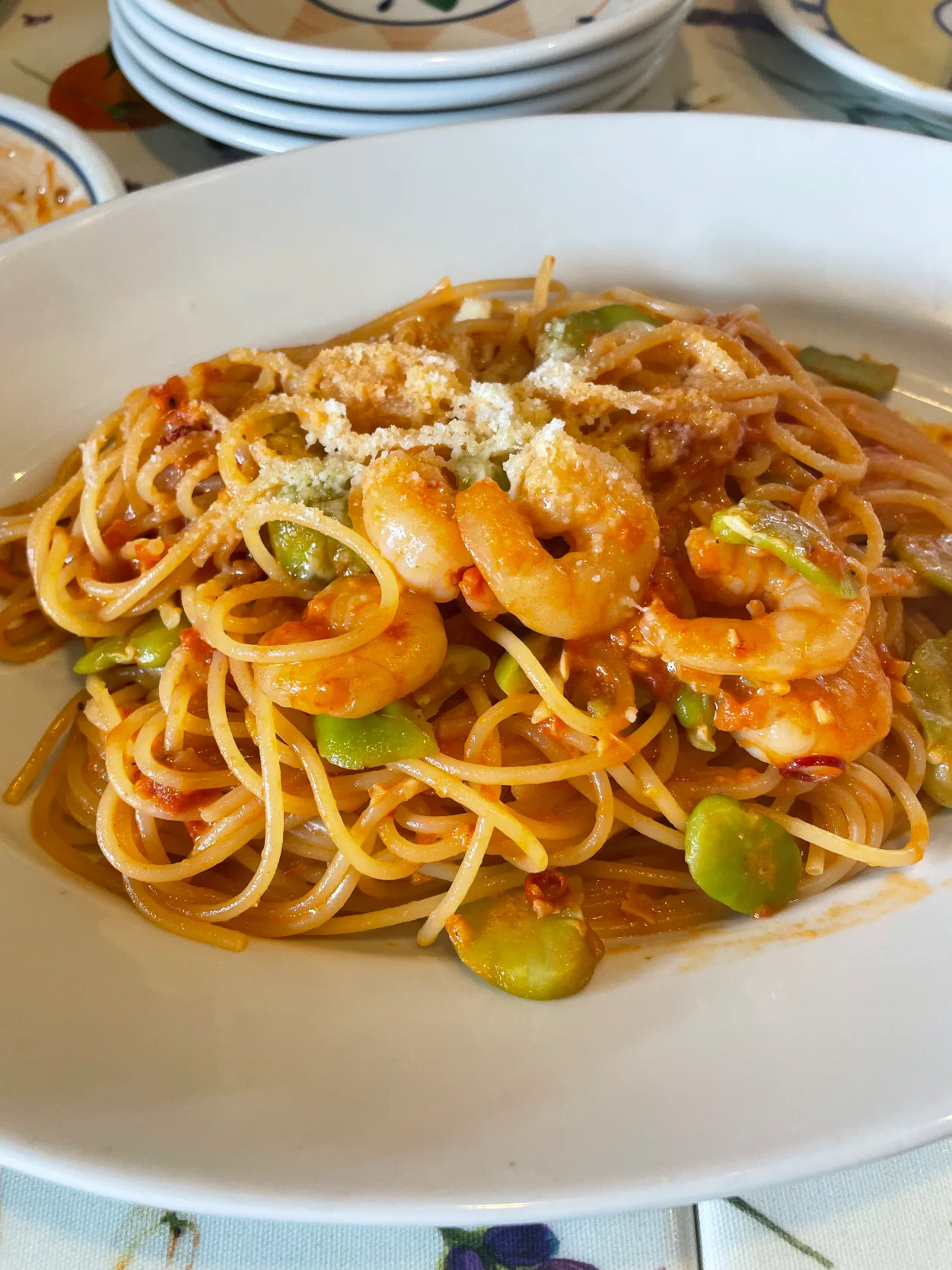 エビと空豆のトマトクリームパスタ「パッパパスタ」