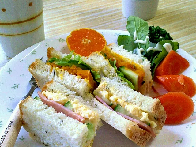 バジルパンでかぼちゃ&卵サンドイッチ