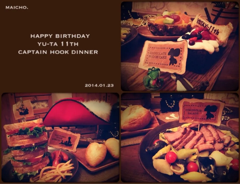 フック船長の船室をイメージして作った誕生日ディナーです♡ハッピーバースデー♡