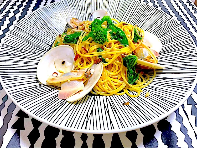 はまぐり、馬鹿デカくて1皿に3つしか入らず、ビジュアルがイメージとだいぶ違いましたが、お味は最高でした😋 菜の花とも相性良かったです!
