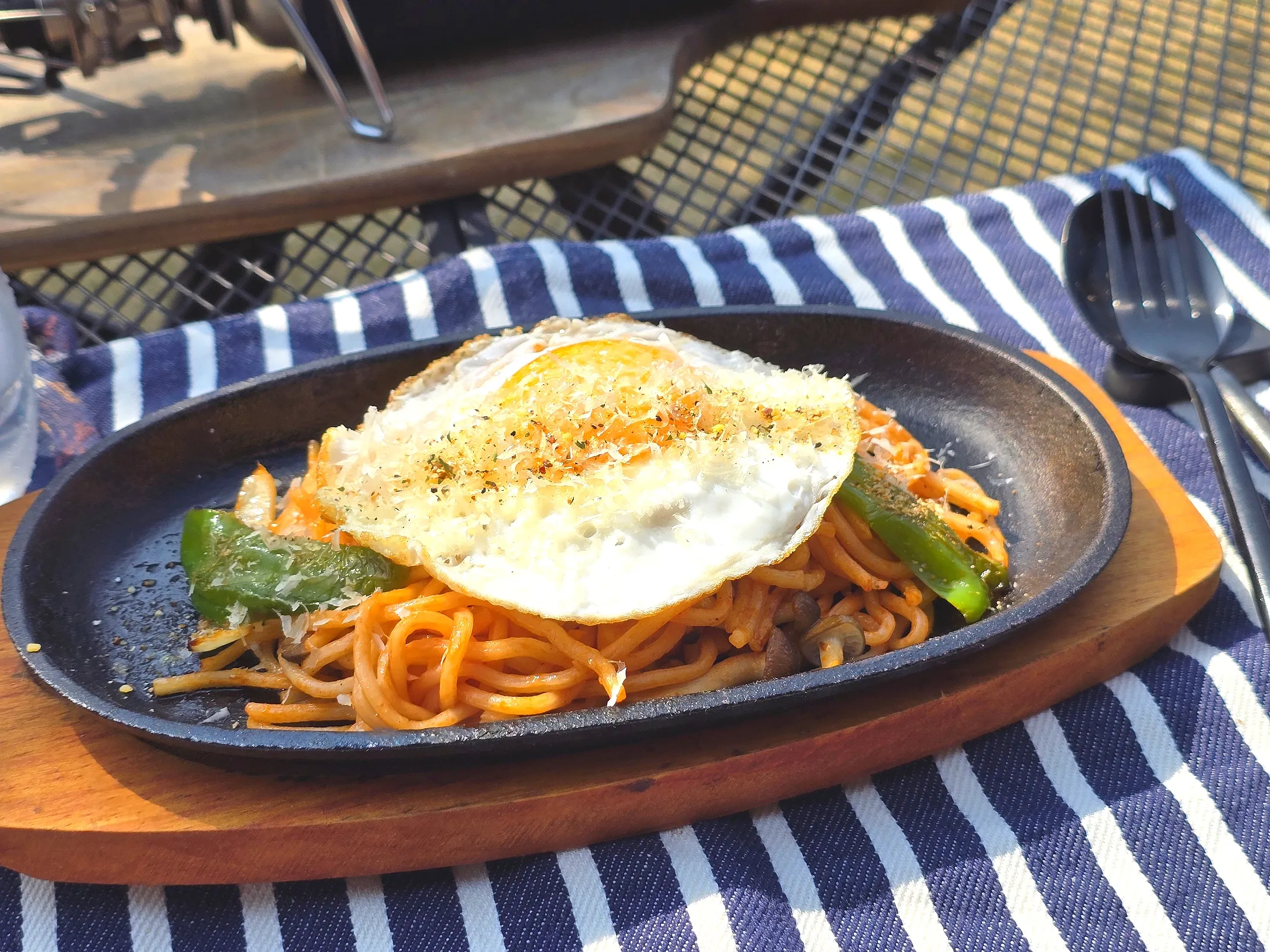 野外+鉄板+オンザ目玉焼き+パルミジャーノ