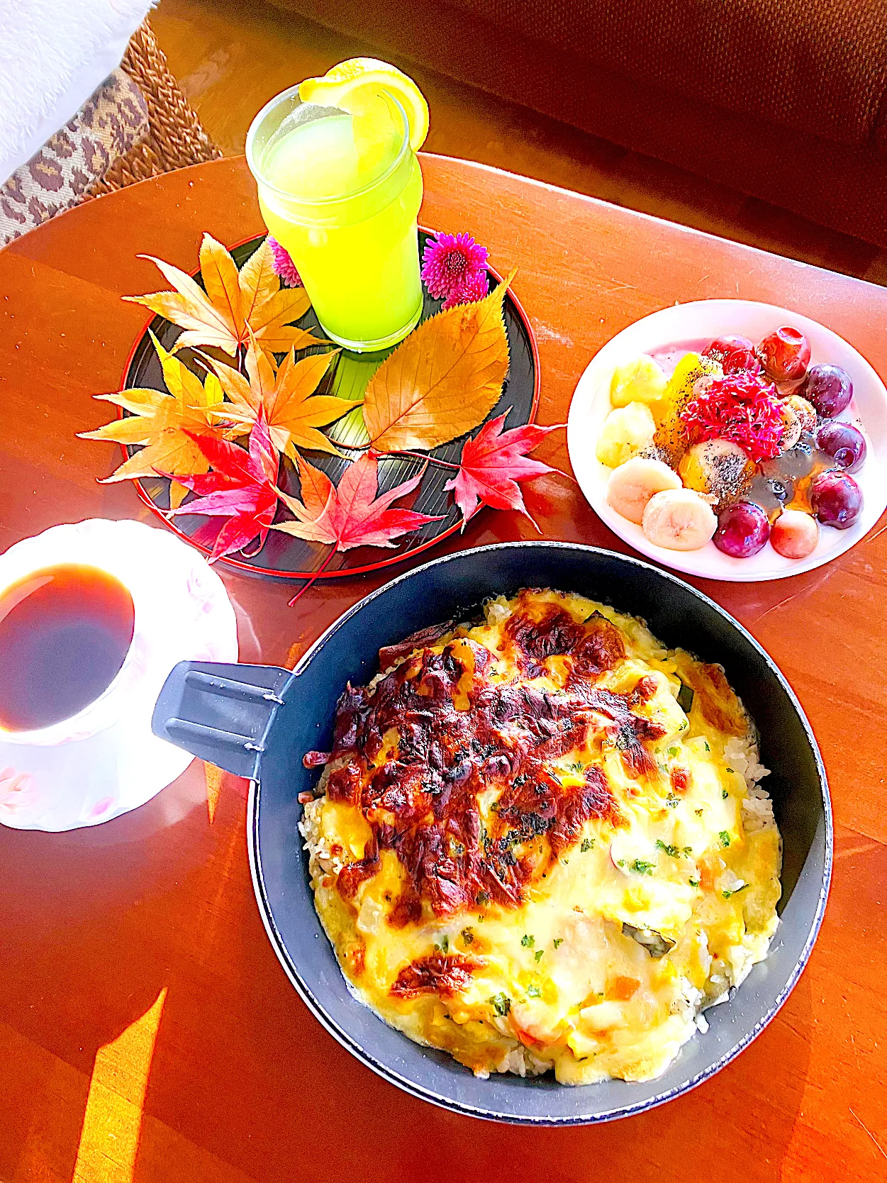 今日も一生懸命楽しい1日を過ごしたいと思います^ - ^🥰 #snapdish #「食卓を紡ぐおたより便」キャンペーン #朝ごはん #ドリア #落ち葉プレート