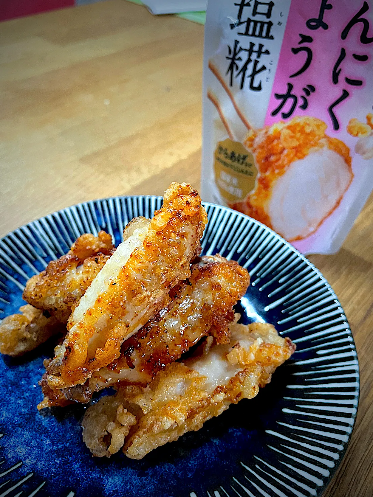 プラス糀にんにくしょうがに漬け込んで揚げてみました!