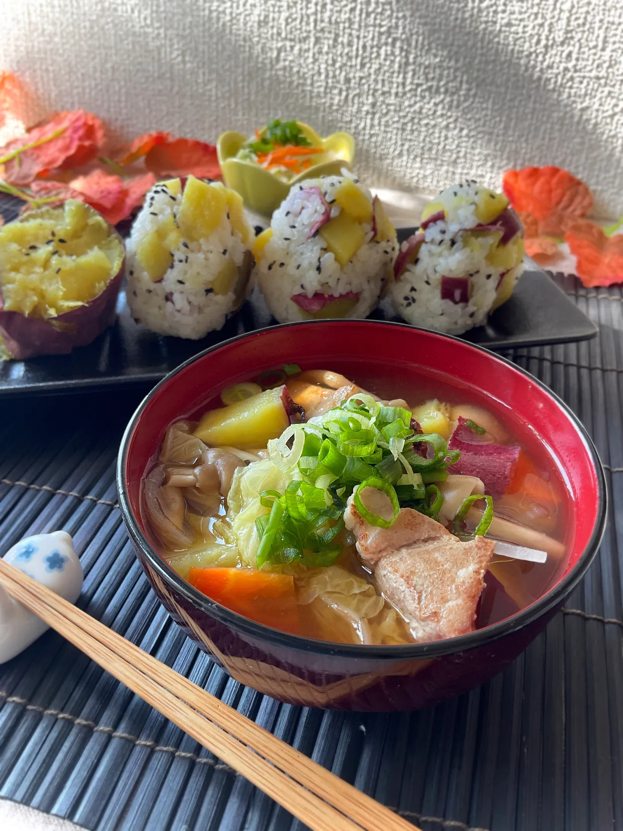 焼き芋のおにぎりと豚汁〜私大好きです😍